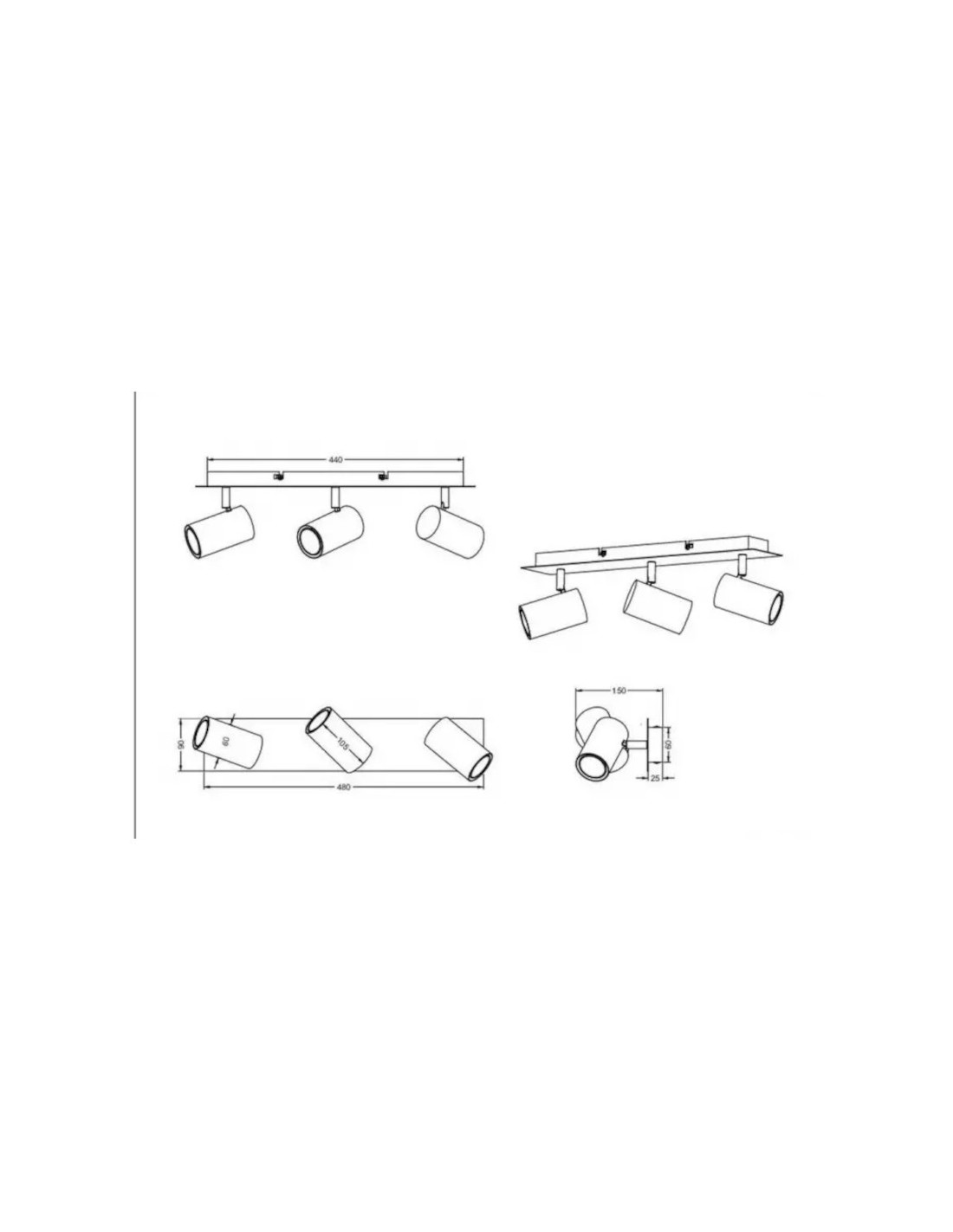 Fonctionne avec 3 ampoules type GU10 (non fournies) 3 x 35 W max