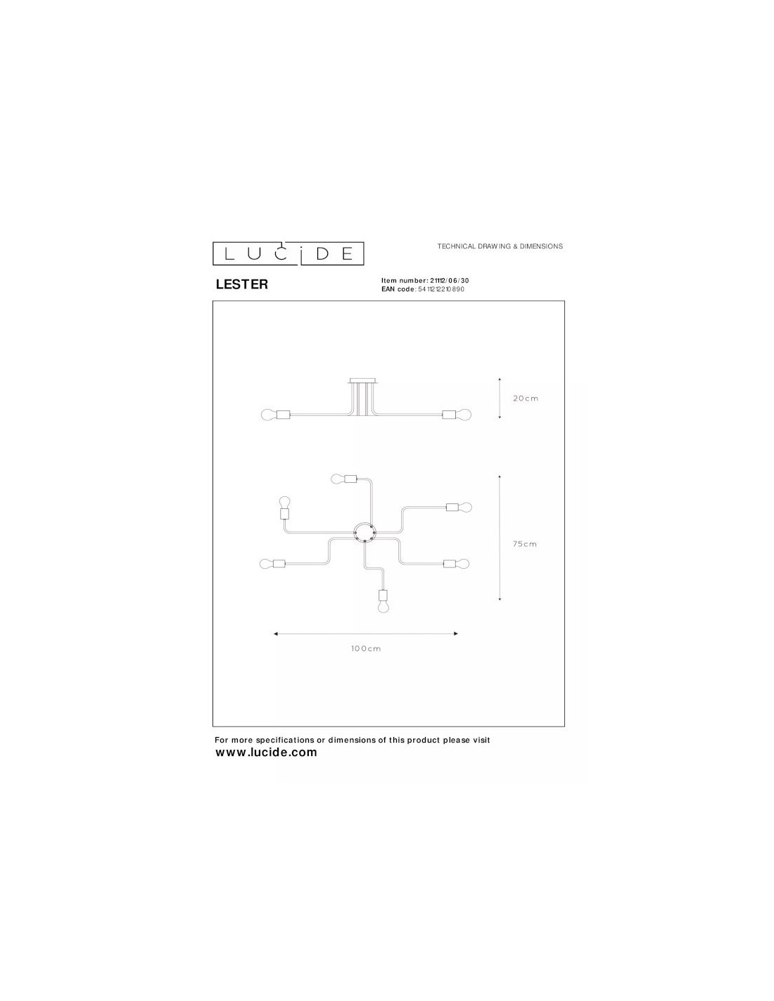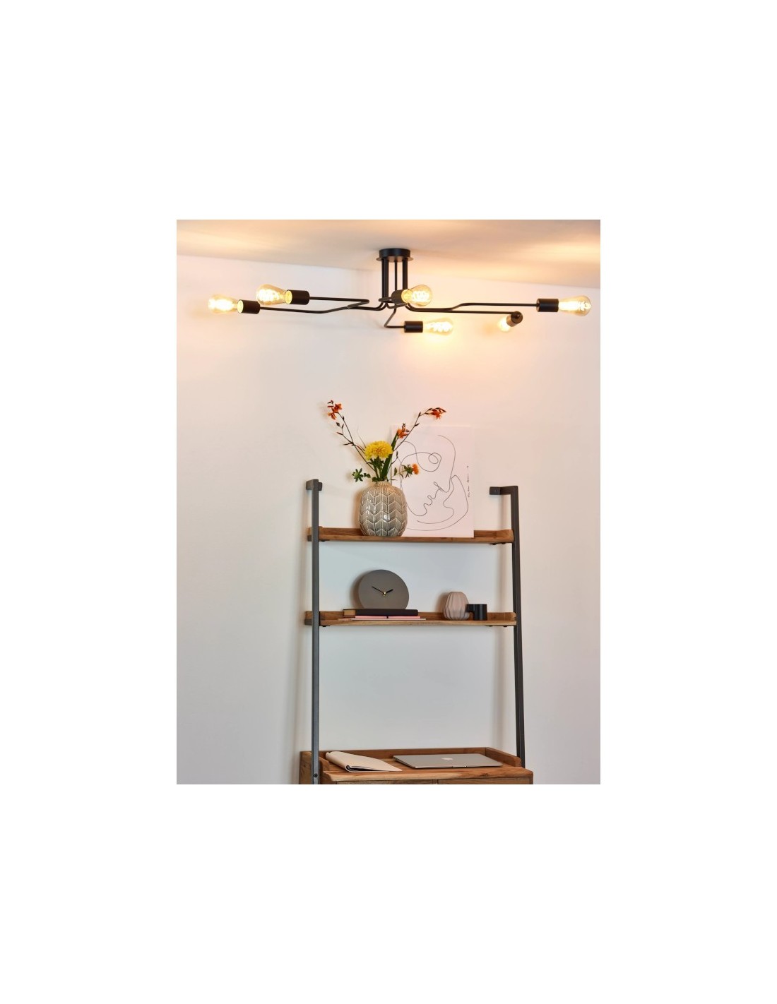 Le plafonnier Lester fonctionne avec 6 ampoules E27 40 W maximum, non fournies, ce qui vous premet de choisir température de couleur et intensité lumineuse de votre éclairage selon vos goûts.