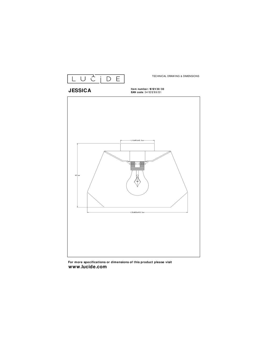 • Consommation énergétique: 1x60W / 230V / A intensité variable (Ampoule non incluse)