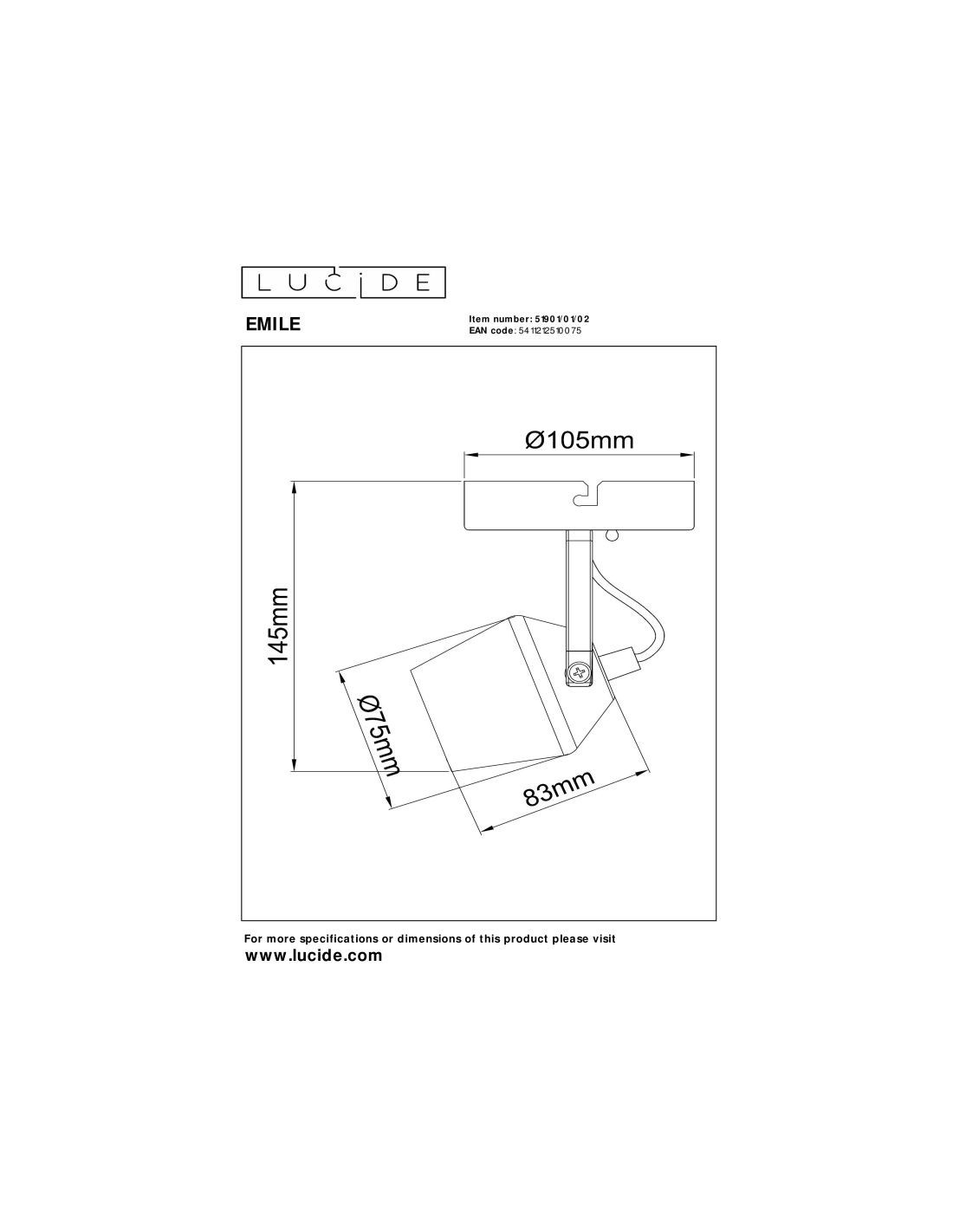 Le plafonnier Emile de la marque Lucide est un spot de plafond compact et fonctionnel alliant design moderne et matériaux de qualité.