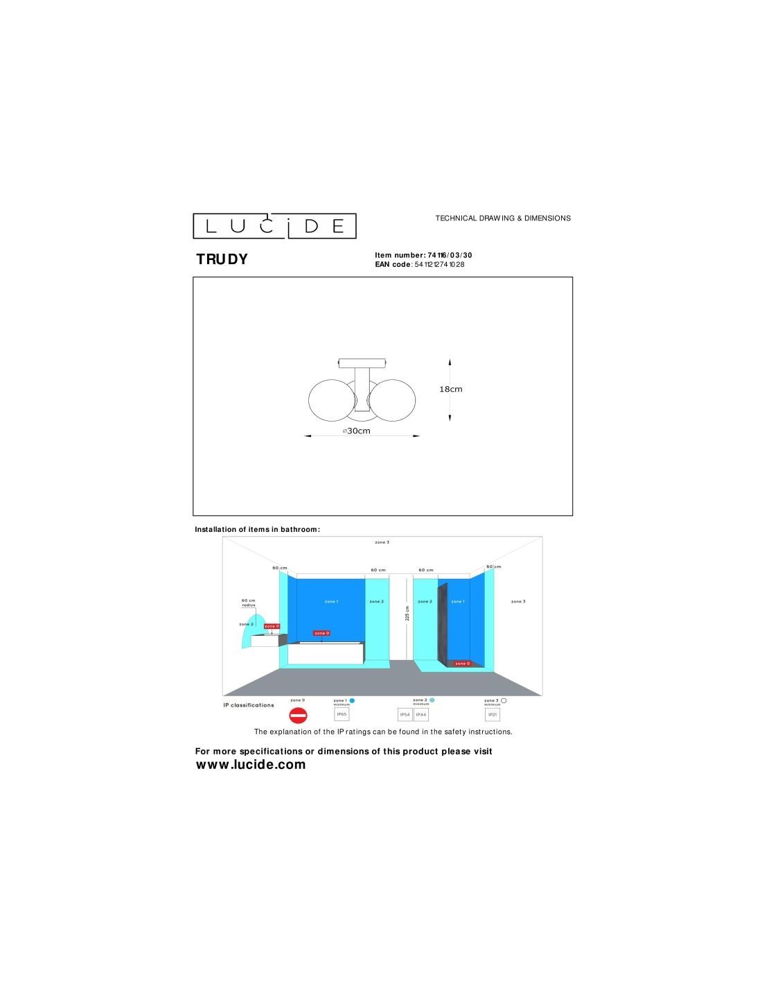 Le plafonnier TRUDY de la marque Lucide en finition noire est un luminaire design spécialement conçu pour l'éclairage intérieur, notamment adapté aux pièces humides comme la salle de bains grâce à sa classe de protection IP44.