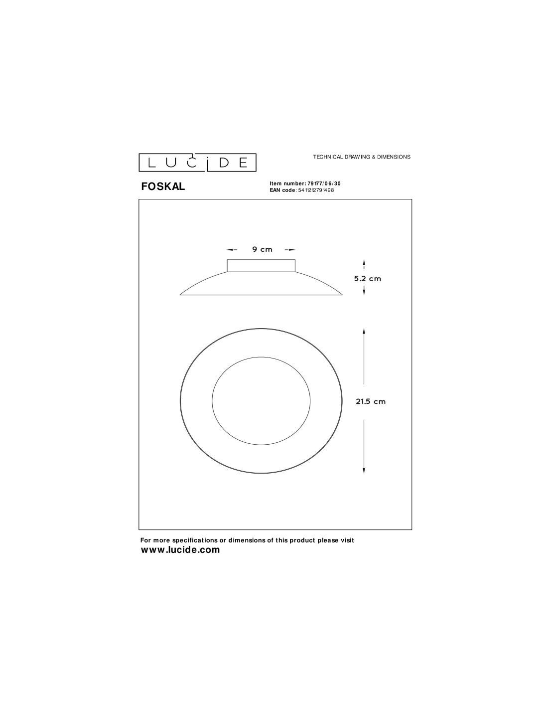 Plafonnier Diam. 21,5 cm LED 1x6W 2700K Noir- Lucide - Foskal