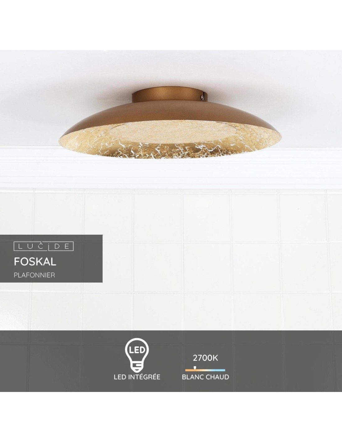 Le plafonnier Led FOSKAL de Lucide en métal laiton allie design élégant et éclairage performant.
