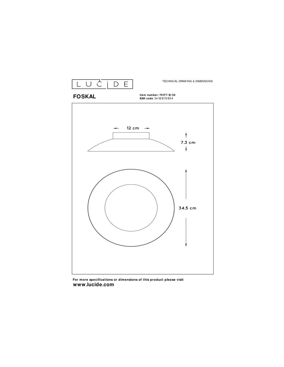 Son format compact de 34,5 cm de diamètre pour 7,3 cm de hauteur, permet une intégration discrète au plafond.