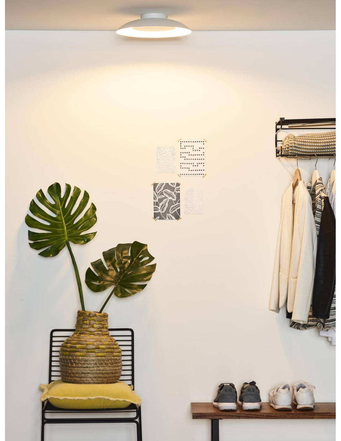 Équipé d'une Led intégrée de 12 W, il diffuse une lumière blanc chaud (2700K) agréable et homogène, idéale pour un salon, une chambre ou un couloir.