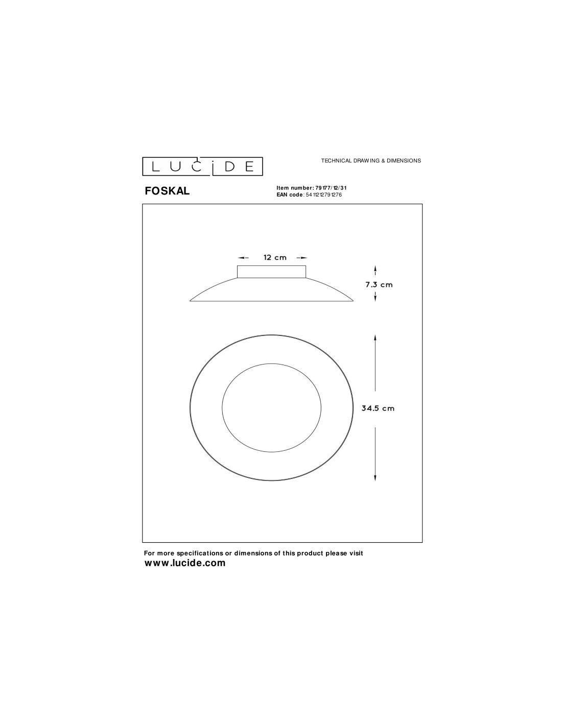 Plafonnier Diam. 34,5 cm LED 1x12W 2700K Blanc - Lucide - Foskal