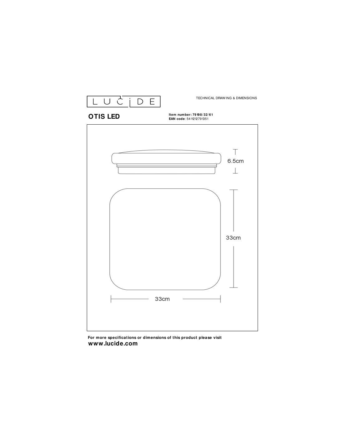 • Dimensions: Lon.33 x Larg.33 x Haut.6,5 cm
