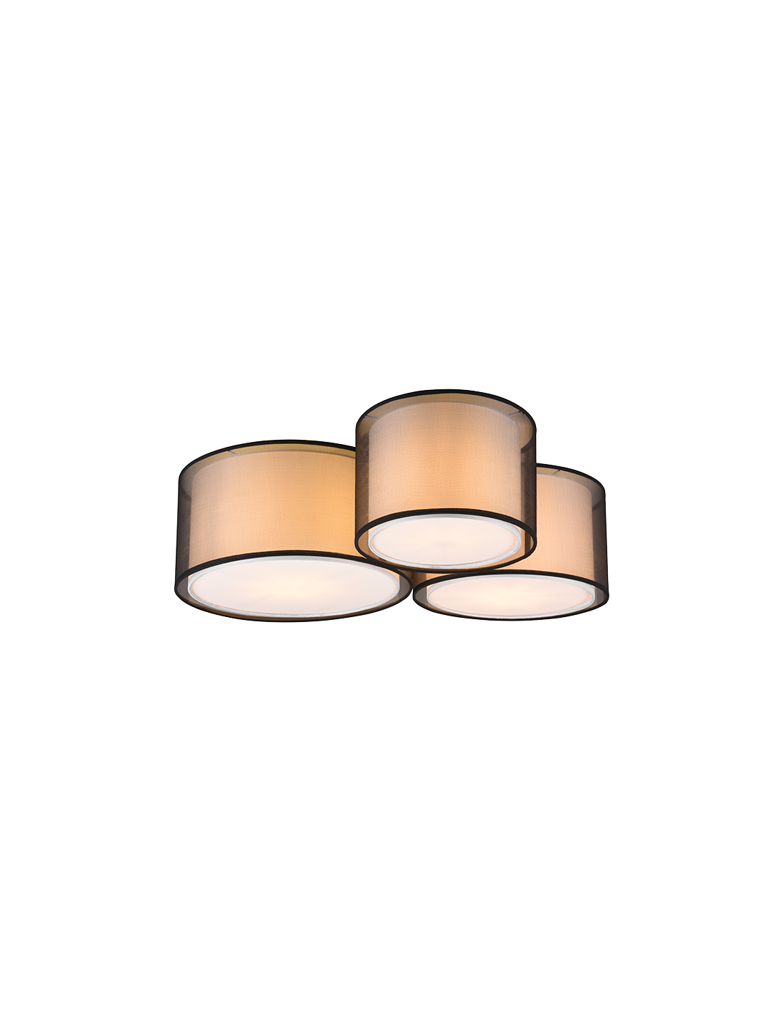 Plafonnier 3xE27, max. 40W, abat-jour organza fumé et tissu blanc – Noir mat – Trio – Burton