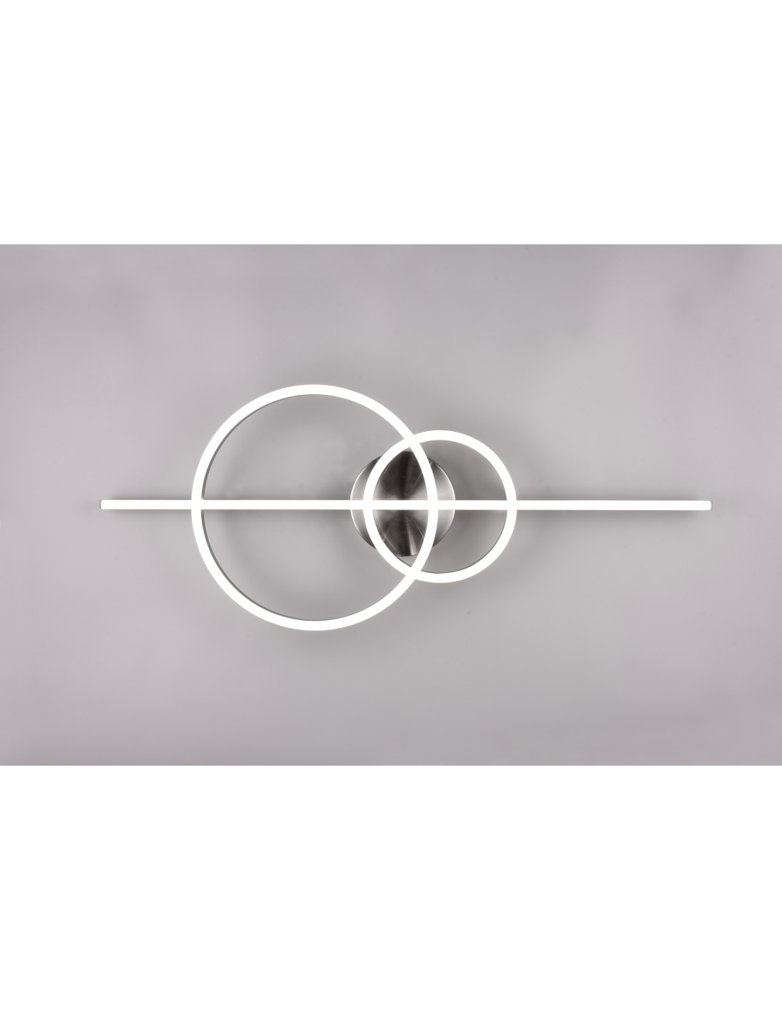 Montilla impressionne par ses formes géométriques élégantes et son fini nickel mat, qui en font un véritable objet décoratif même lorsqu’il est éteint. Il peut être installé au plafond ou au mur selon vos préférences.