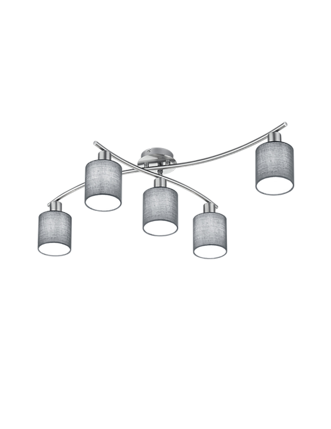 Avec son cadre métallique en nickel mat et ses abat-jour en tissu gris, le plafonnier GARDA s'intègre parfaitement dans un environnement moderne et épuré.