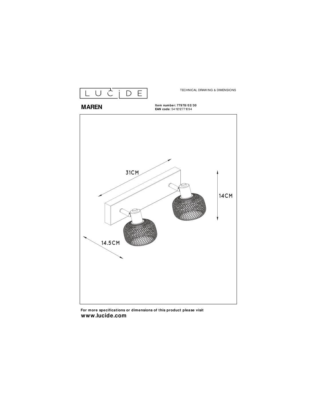 Spot plafond 2xE14 noir Mat - Lucide - Maren