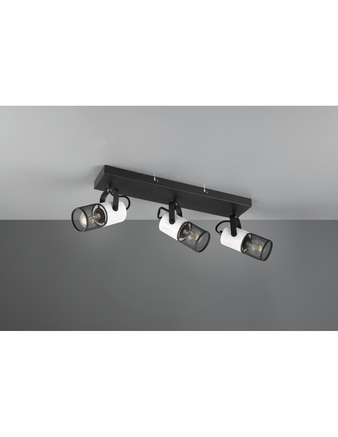 Spot plafond orientable 3xE14 noir et bois blanc - Trio - Tosh