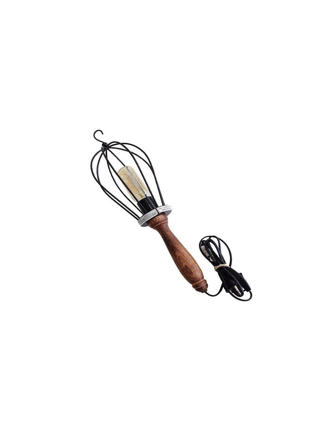 Cette suspension est composée d'une cage en métal noir, d'un manche en bois massif, d'un câble noir d'une longueur de 5 mètres d'un crochet de suspension et d'une douille culot E27 .