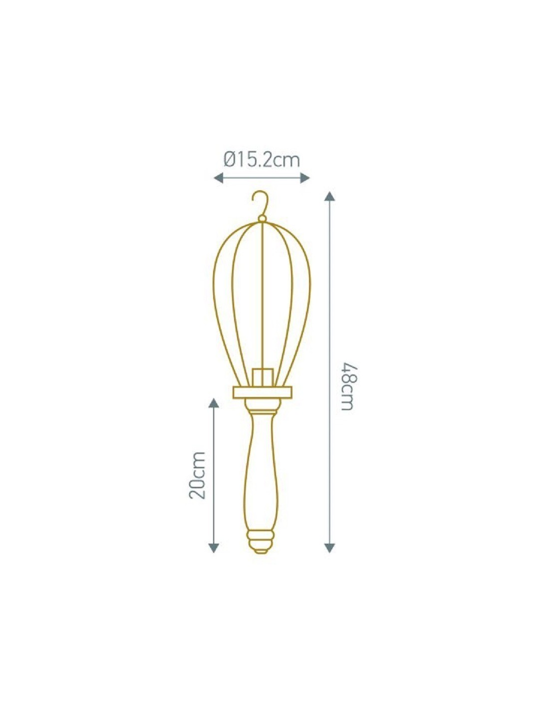 Dimension de la suspension : hauteur de 48 cm, diamètre de 15,2 cm et câble de 5 mètres.