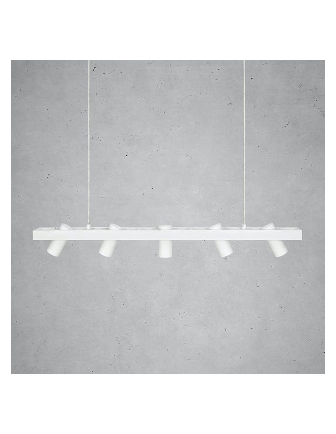 Cette suspension à 5 points lumineux peut éclairer efficacement une longue table rectangulaire ou l’îlot central de votre cuisine ouverte.
