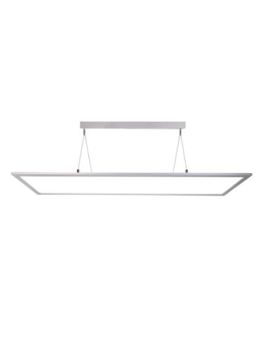 Ce panneau Led transparent est composé d'une rosace de plafond en aluminium, d'un cadre en aluminium également, de filins de suspension en acier et d'un diffuseur en PMMA.