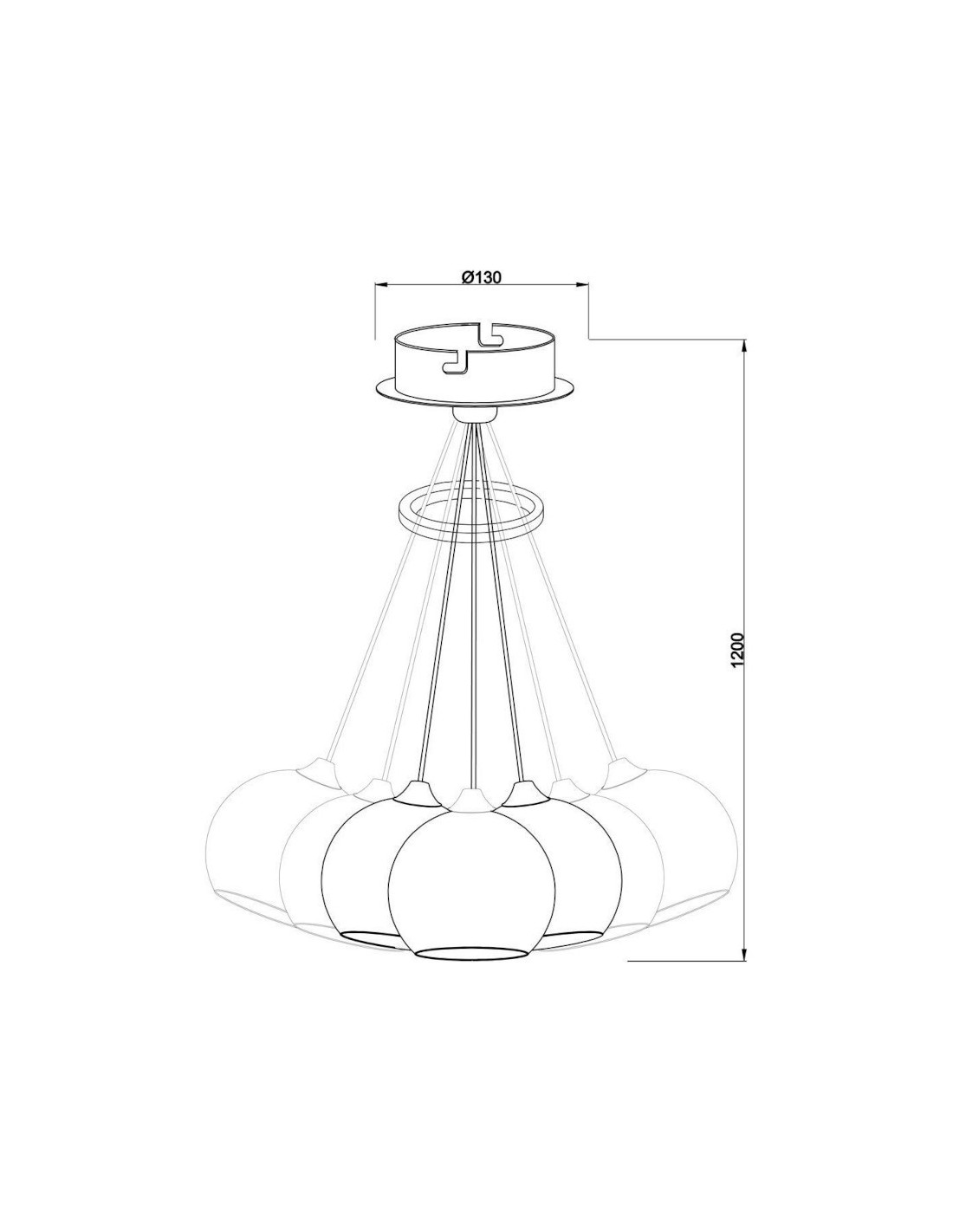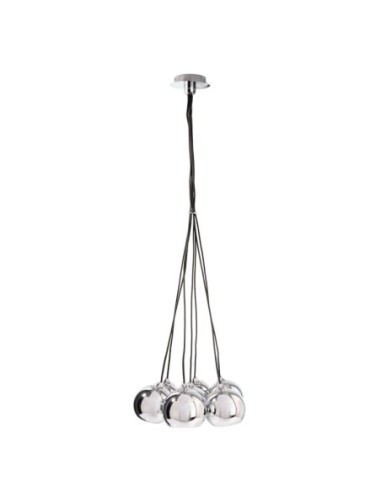 Ce lustre est composé de 7 sphères et d'une rosace en métal chromé et de câbles textile noirs.