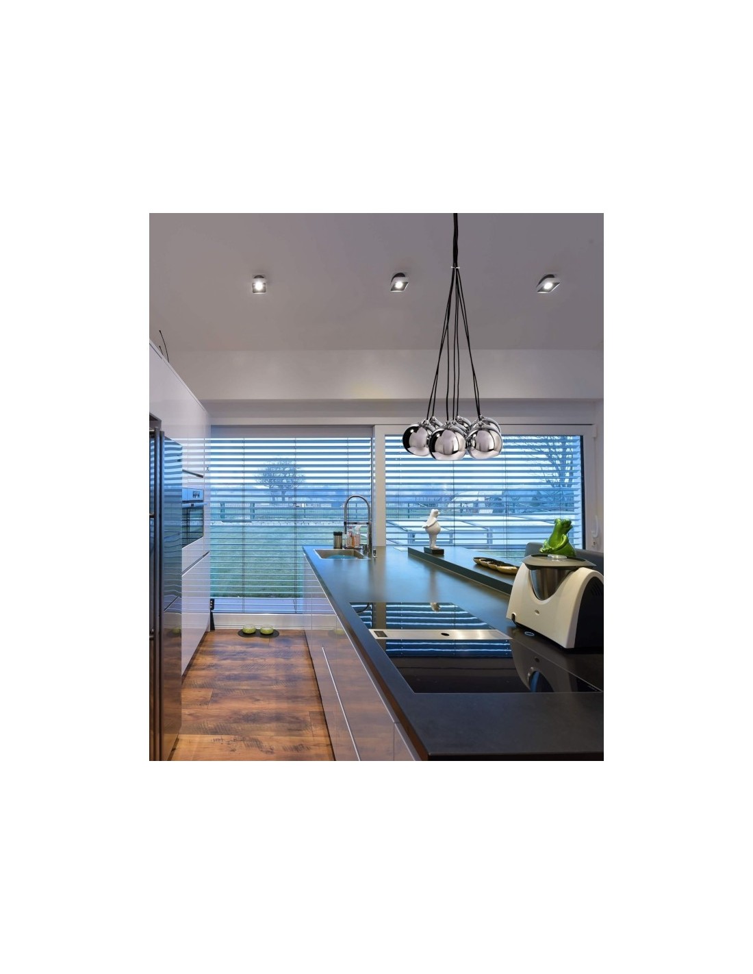 Elle fonctionne avec 7 ampoules GU10, non fournise, ce qui vous permet de choisir intensité lumineuse et température de couleur en fonction de vos goûts et besoins.