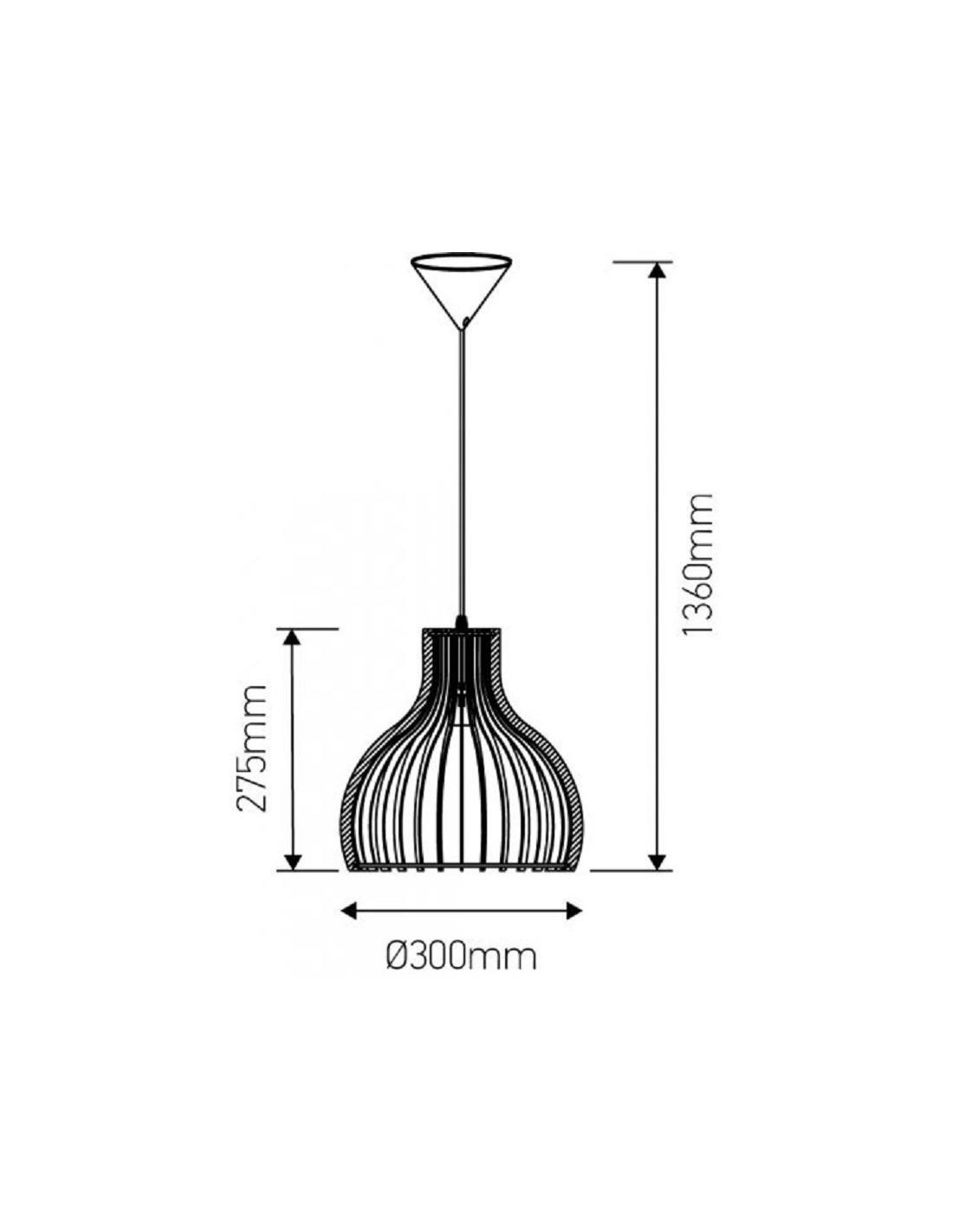 Dimension de la suspension : hauteur de 27,5 cm, diamètre de 30 cm et le câble textile de 1,36 m (réglable).