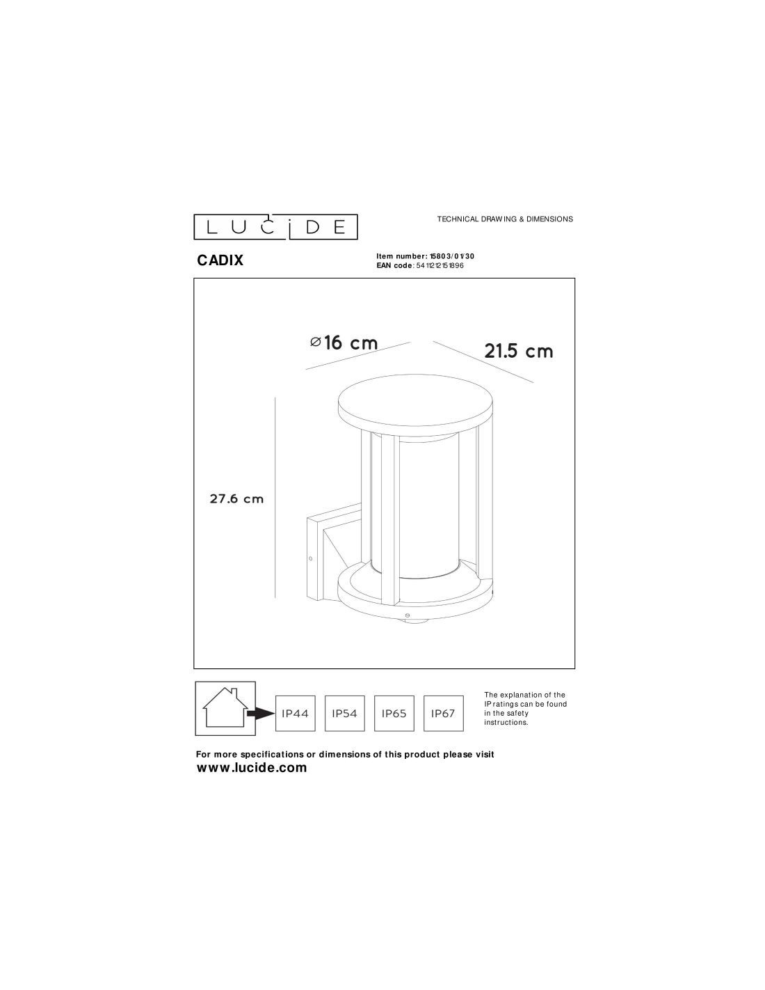 Dimensions (Haut. x Diam.) : 23 cm x 20 cm Longueur câble textile (réglable) : 1,50 m