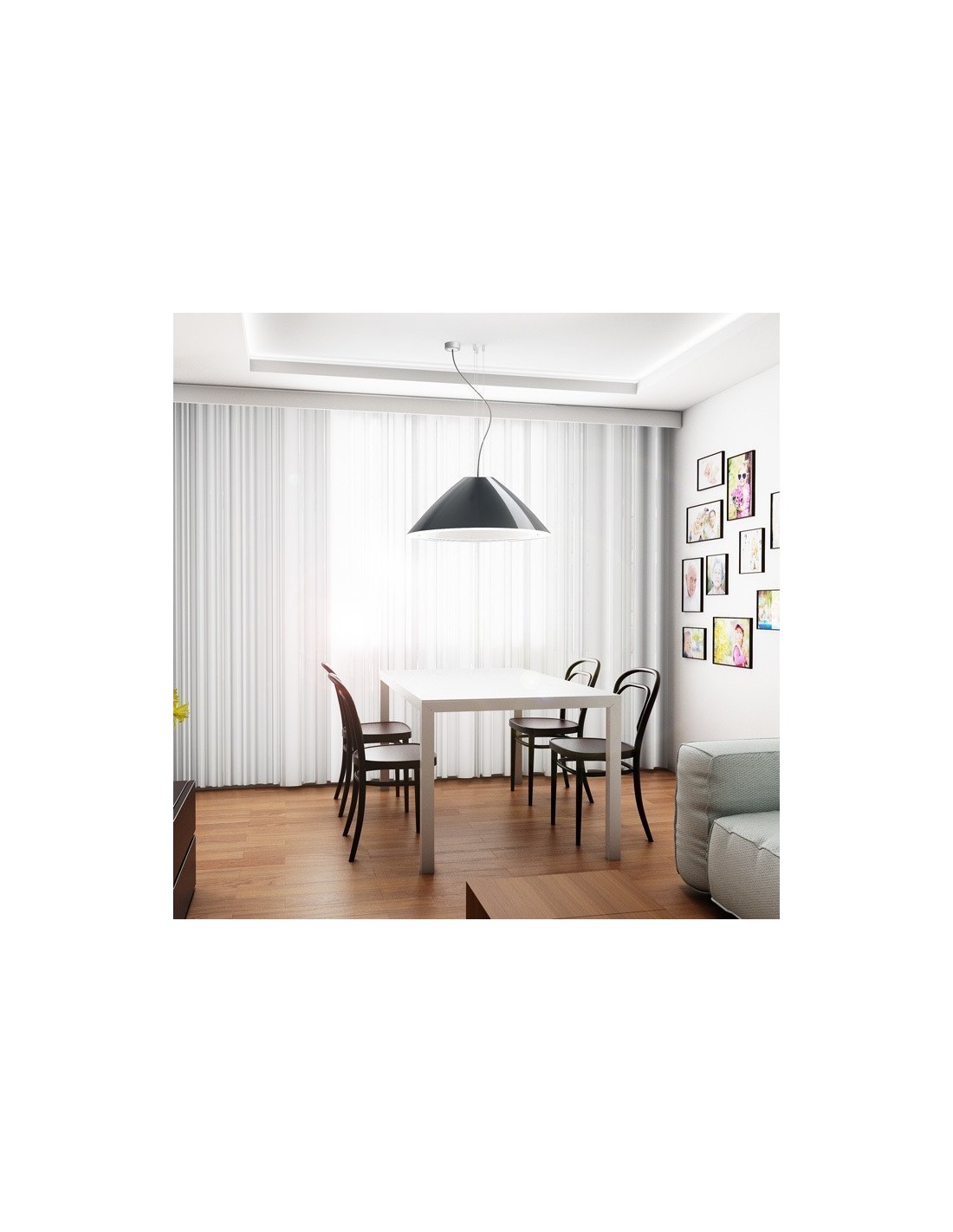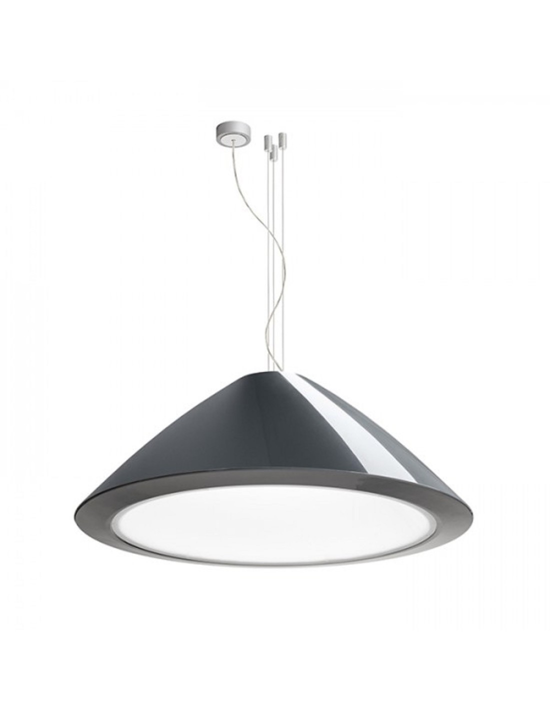 La suspension Led lumineuse Rond 80 est composée d'une rosace en aluminium , d'un câble d'alimentation en métal et d'un abat-jour en fibre de verre anthracite brillant à l'extérieur et blanc à l'intérieur.