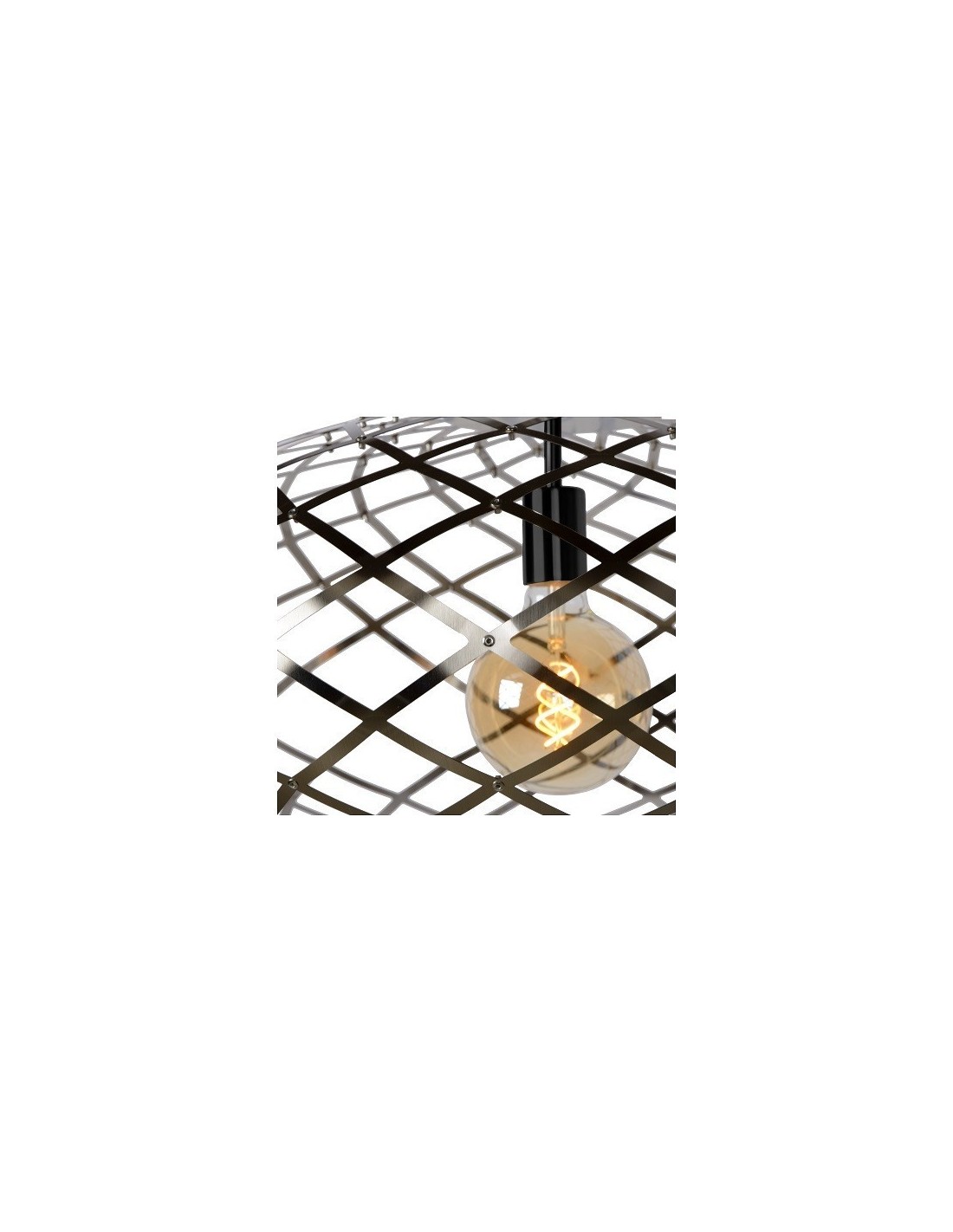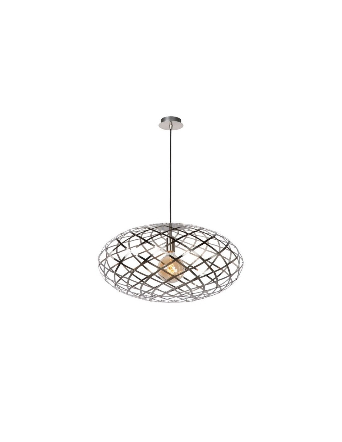 Cette suspension lumineuse est en résille de métal chrome dépoli.