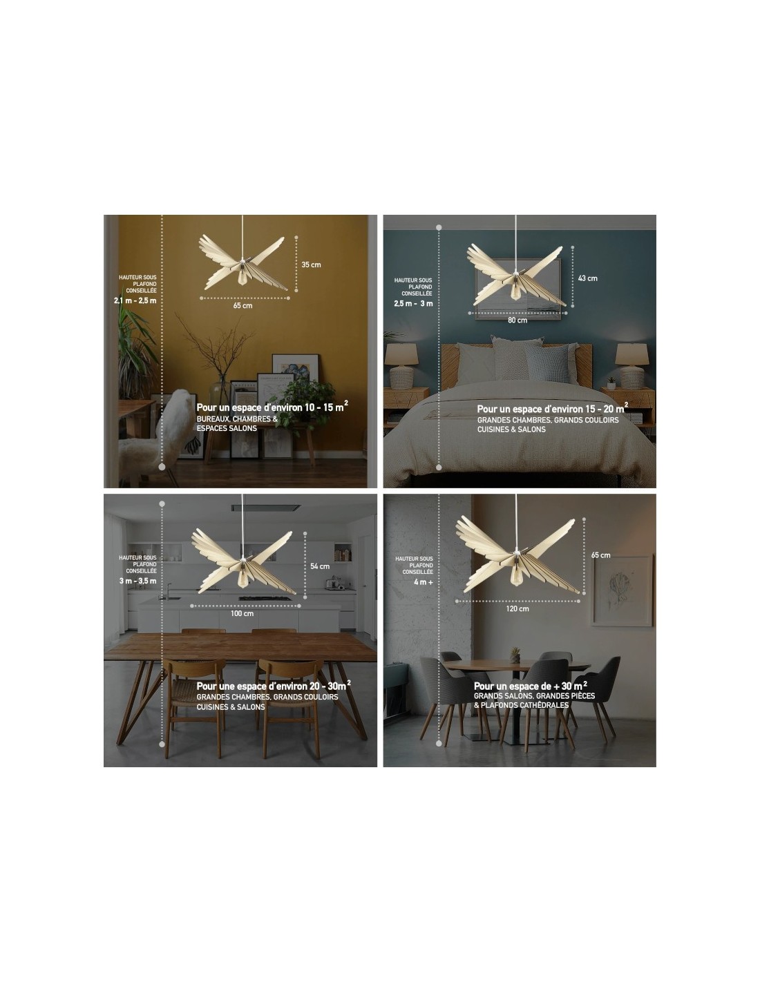 des suspensions telles qu'Aurora, proposée en 4 tailles ou Andromède