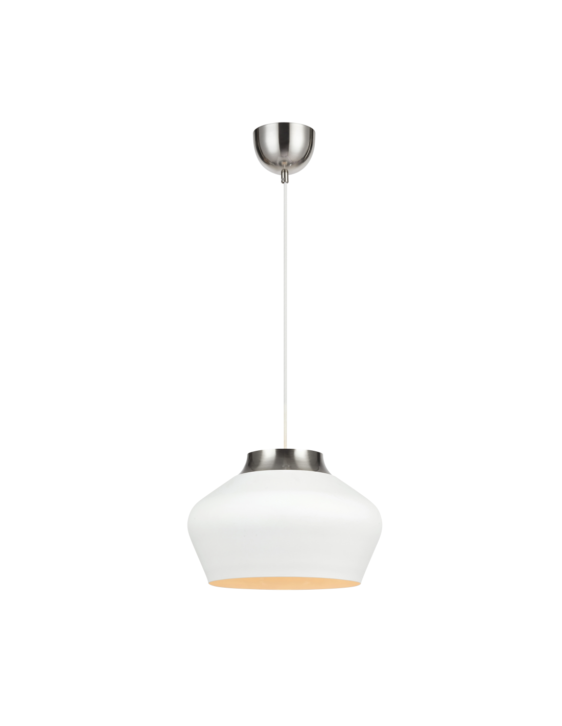 La suspension Kom est en métal blanc et chromé.