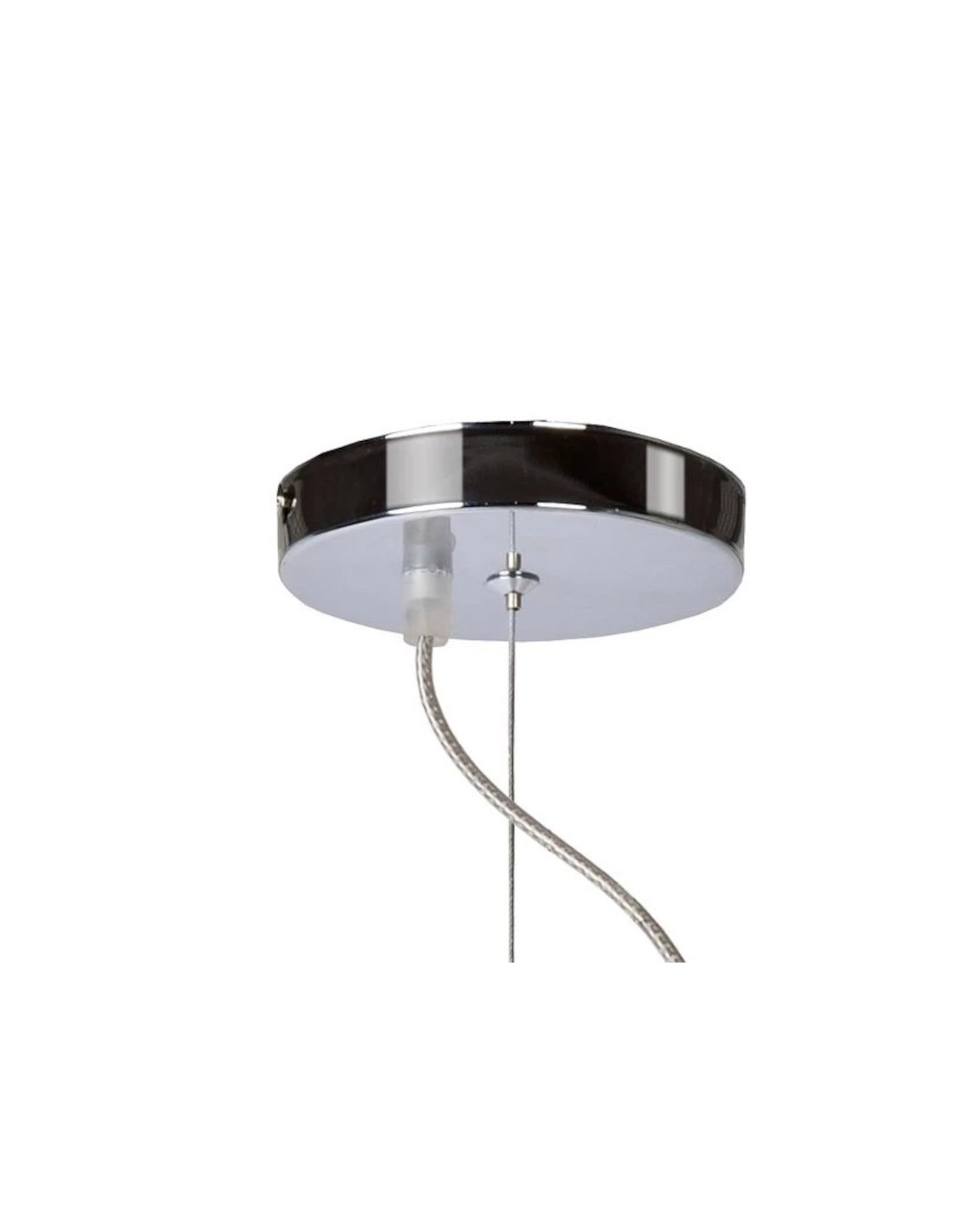 La suspension Led Noon de chez lucide est en métal chrome dépoli.