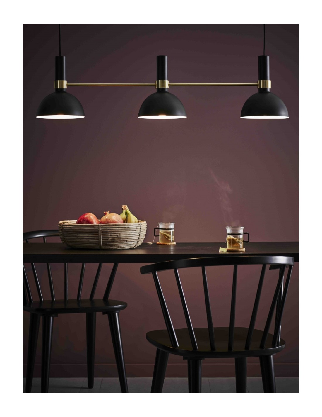Cette suspension est composée de 3 abat-jour alignés et trouvera particulièrement sa place au-dessus d'un bar, de l’îlot central de votre cuisine ou d'une grande table rectangulaire.