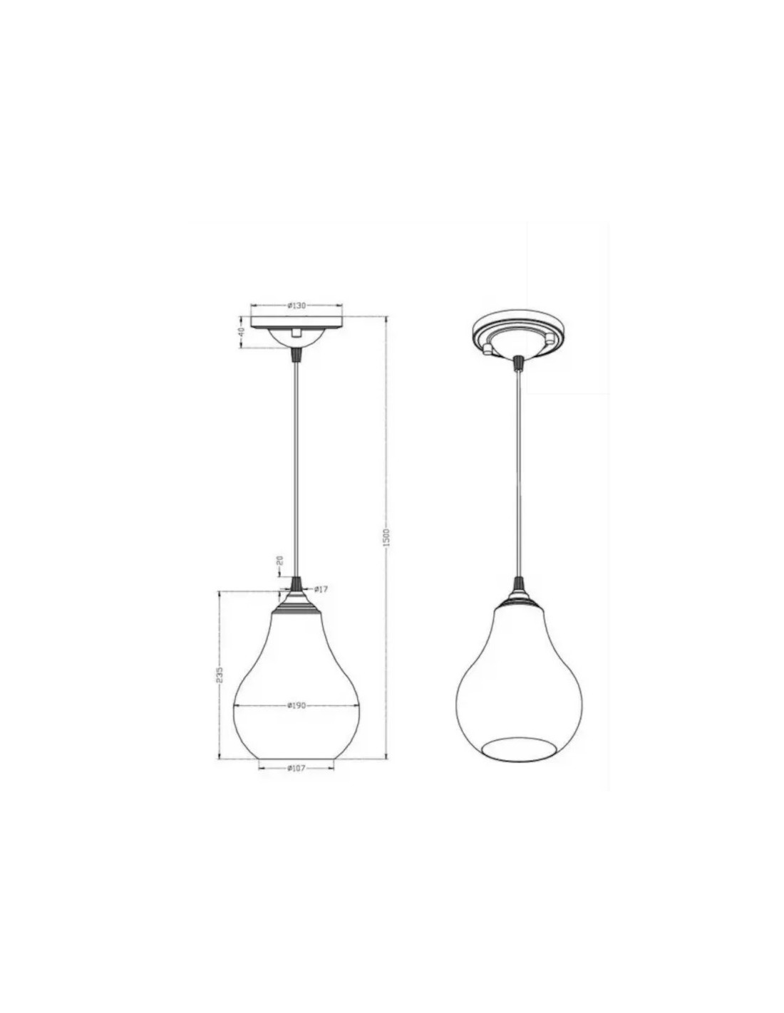 Dimensions (Haut. x Diam.) : câble 126,5 cm (réglable) - lustre 23,5 cm x 19 cm Poids : 0,7 kg
