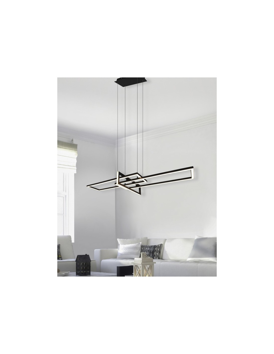 La suspension Salinas, composée de rectangles de métal noir entrecroisés allie efficacité et style. Elle offre un système d'éclairage unique !