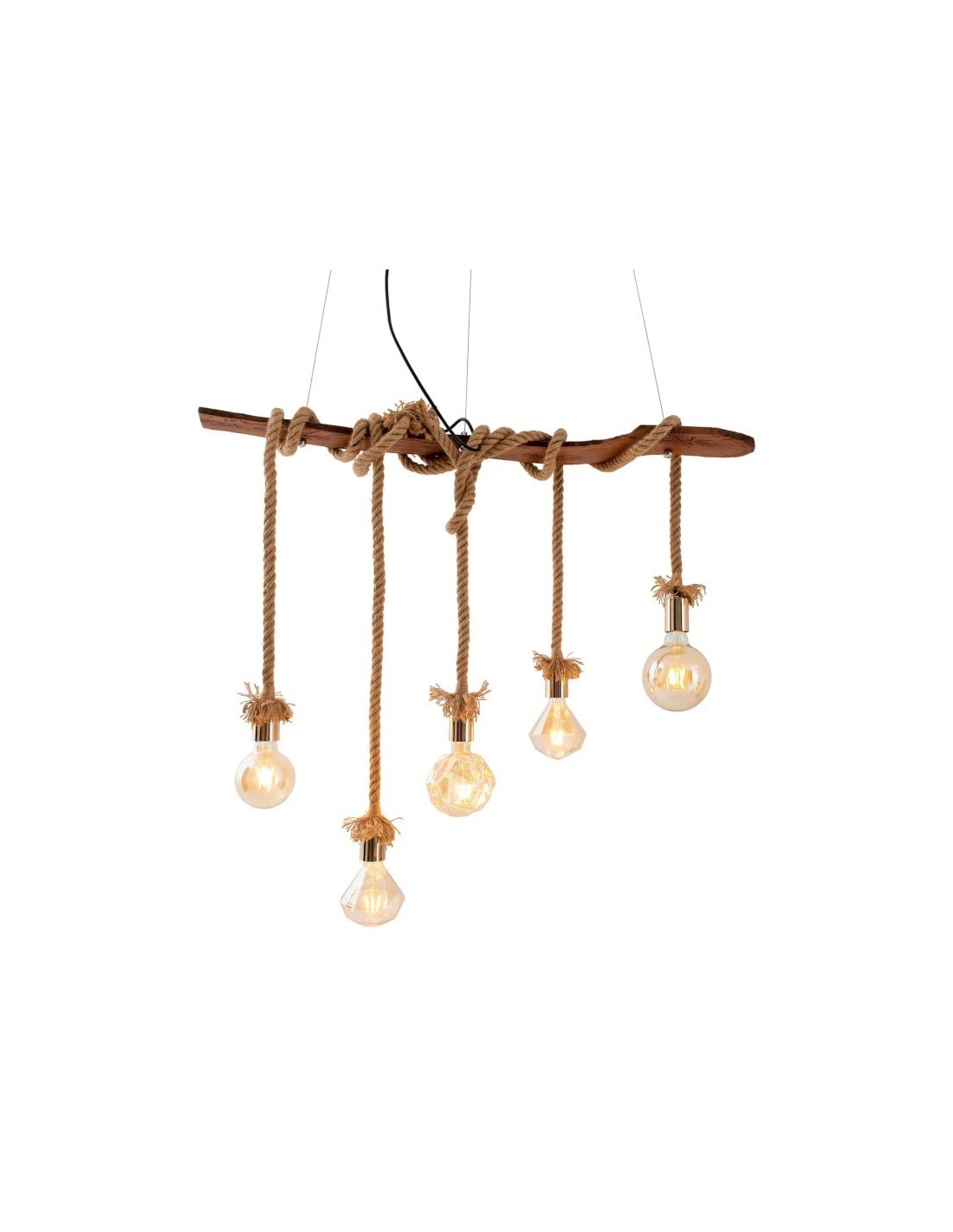 Suspension 5 points lumineux culot E27 bois et métal - Näve - Rope