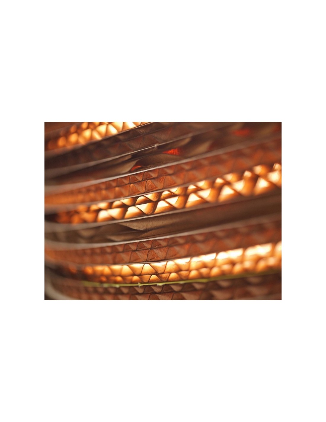 La lumière priojetée au travers des ondulations du carton produit un éclairage chaleureux et intime.