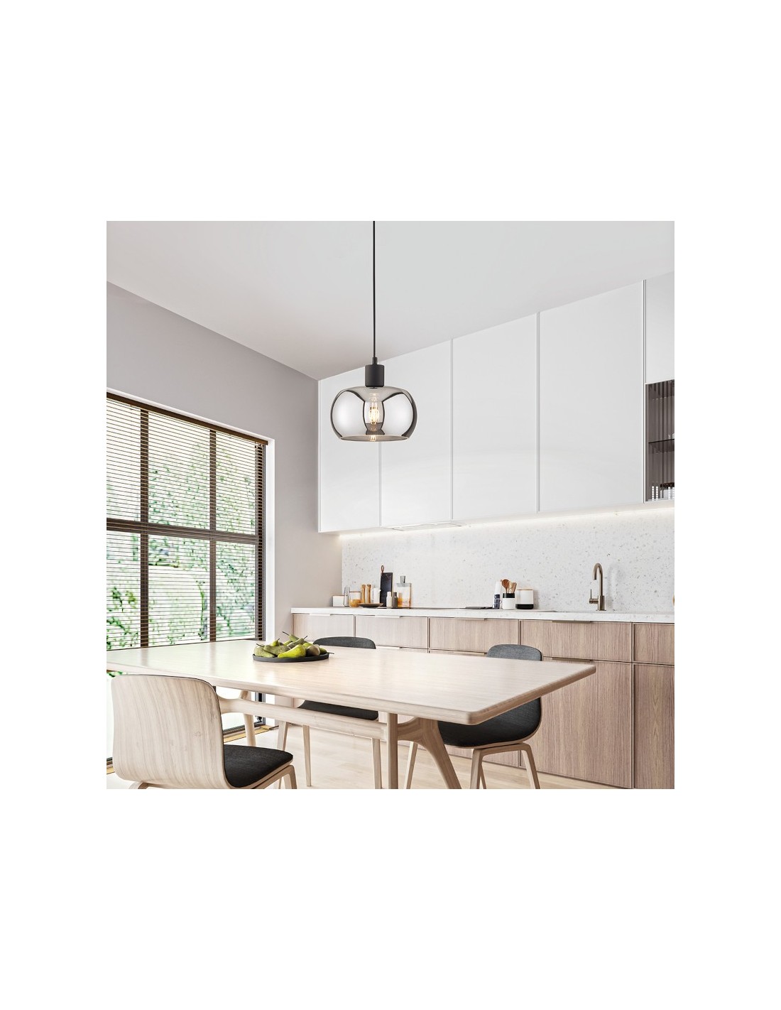 Afin de mettre en valeur le globe en verre fumé, nous vous conseillons d'équiper ce luminaire avec une ampoule à filament.