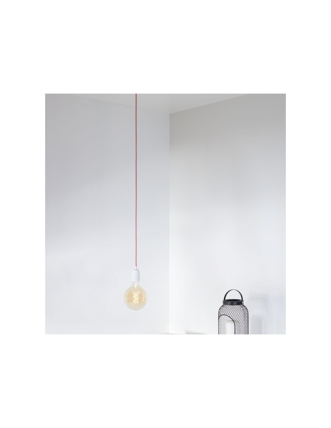 Le cordon couleur rouge et blanc qui imite parfaitement les anciens cordons en coton contribue à renforcer l'aspect rétro de ce luminaire.
