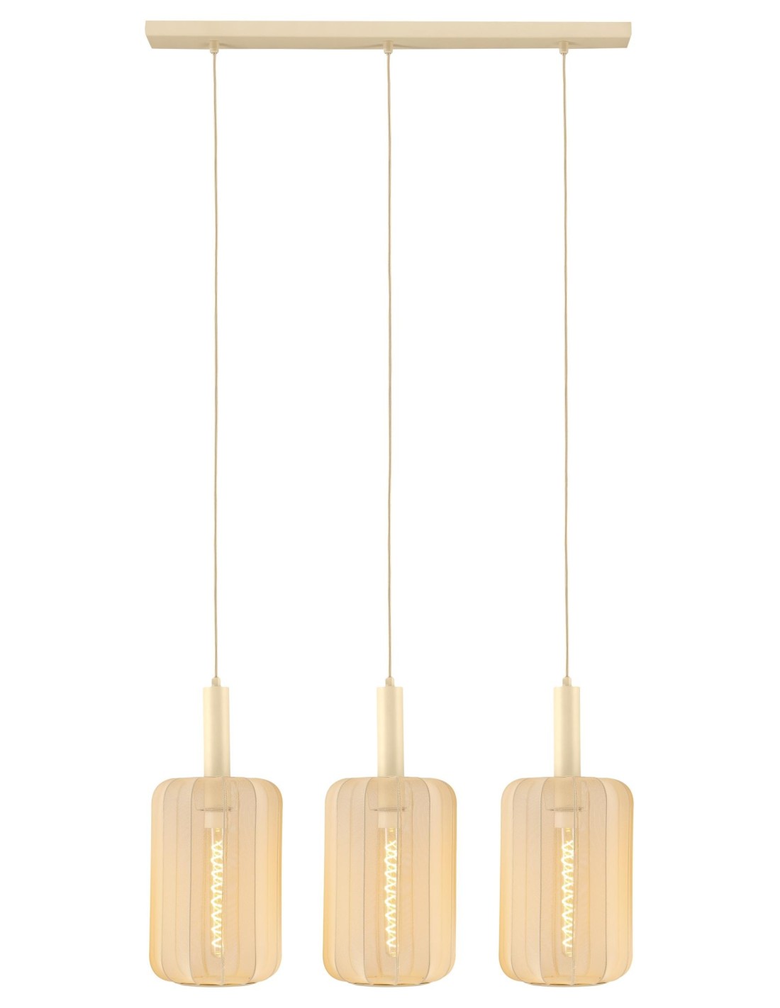 Avec Corina vous transformerez votre salle à manger en un spectacle enchanteur. La hauteur des trois luminaires suspendus en tissu de haute qualité sont facilement réglables de 70 à 185 centimètres. C'est à vous de décider si vous préférez un style épuré ou enjoué. Vous aurez également encore plus de liberté créative en connectant la lampe suspendue à un variateur externe. Quoi qu'il en soit, la lumière chaude et tamisée de ce lustre moderne plonge votre pièce dans une atmosphère agréable et mystérieuse. Pourquoi hésiter ? Jetez un coup d'œil à la lueur mystérieuse de Corina.
