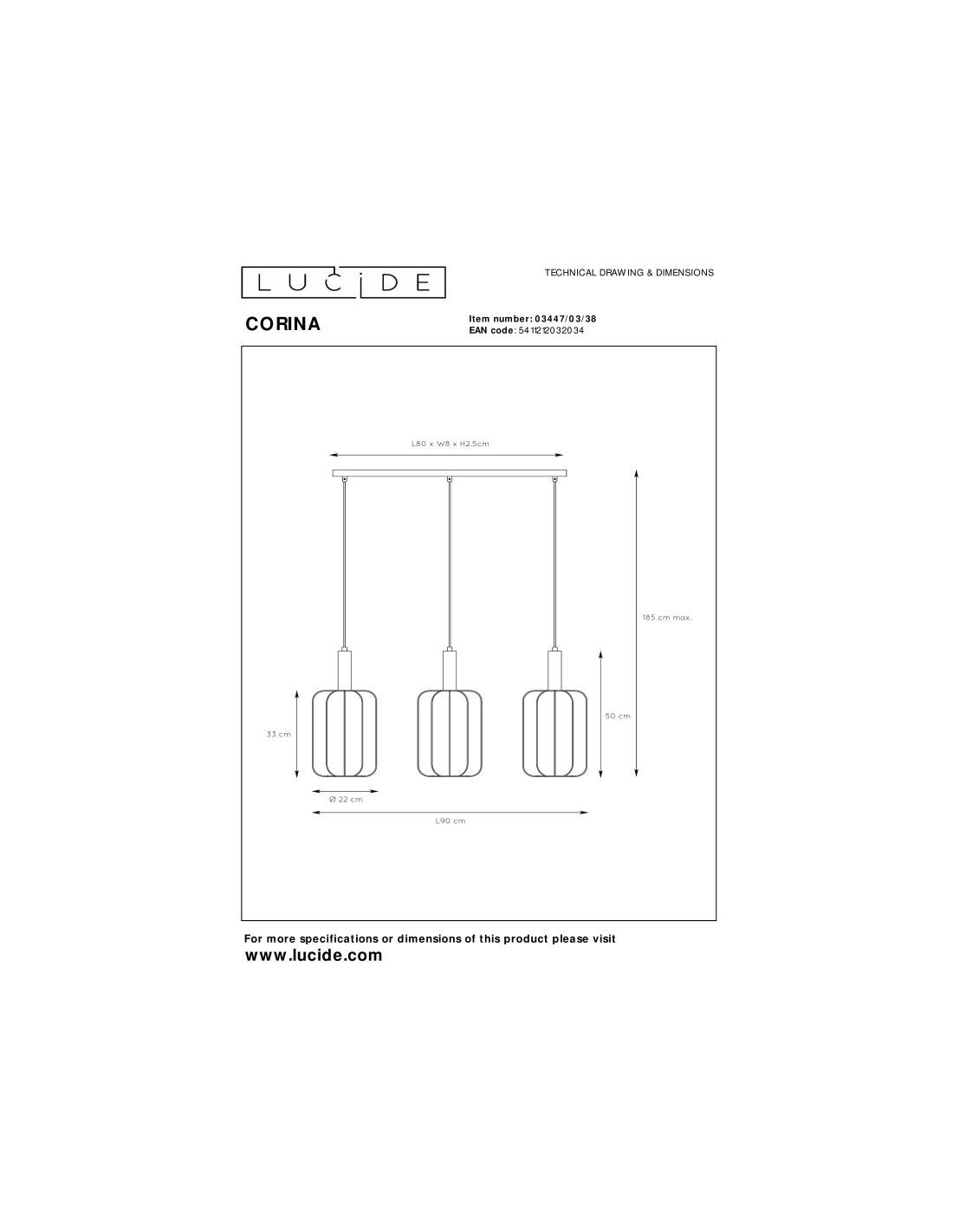 • Consommation énergétique: 3x40W / 230V / A intensité variable (Ampoules non incluses)