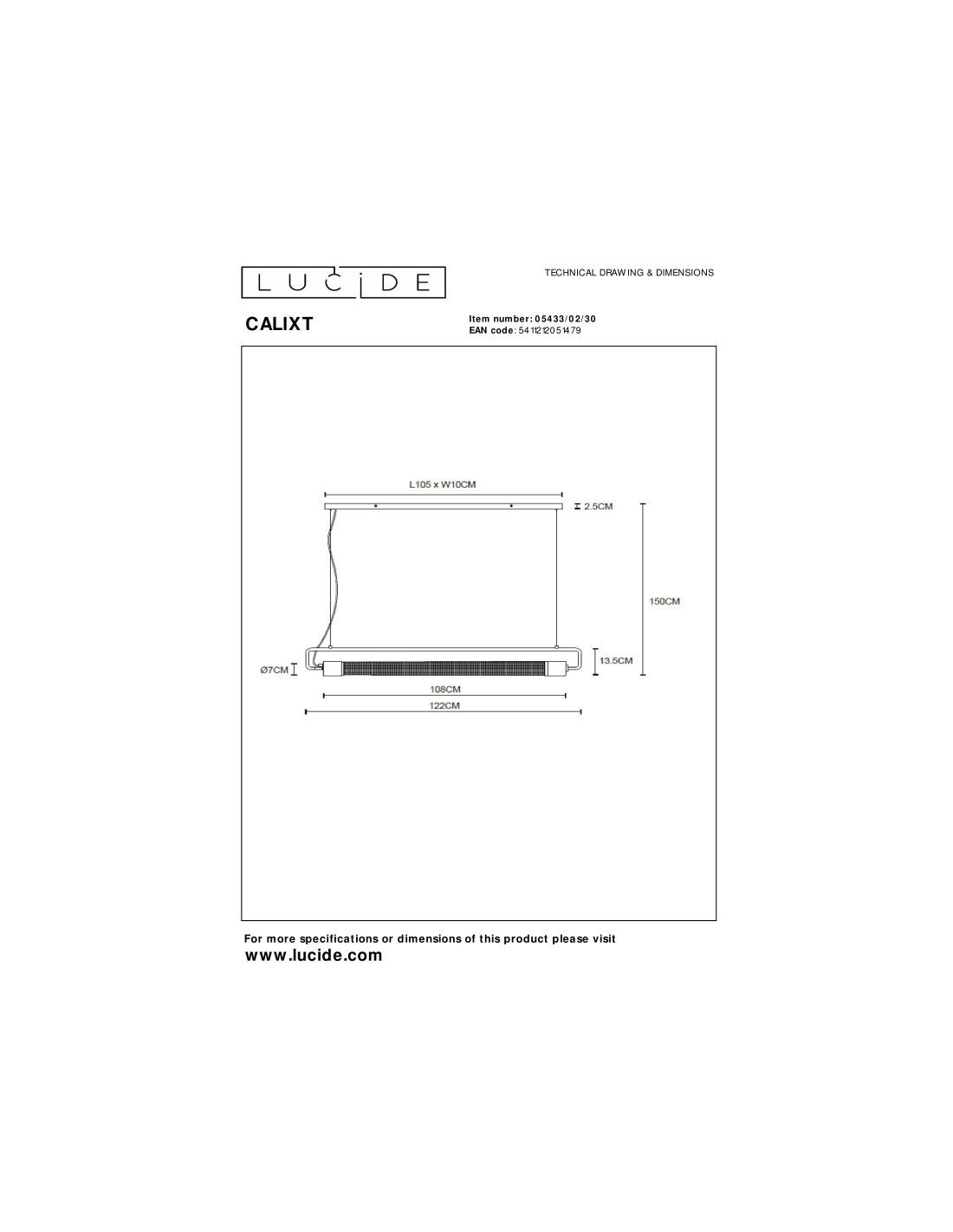 • 2 Ans garantie sur le luminaire / source de lumière appropriée est EAN: 5411212491404