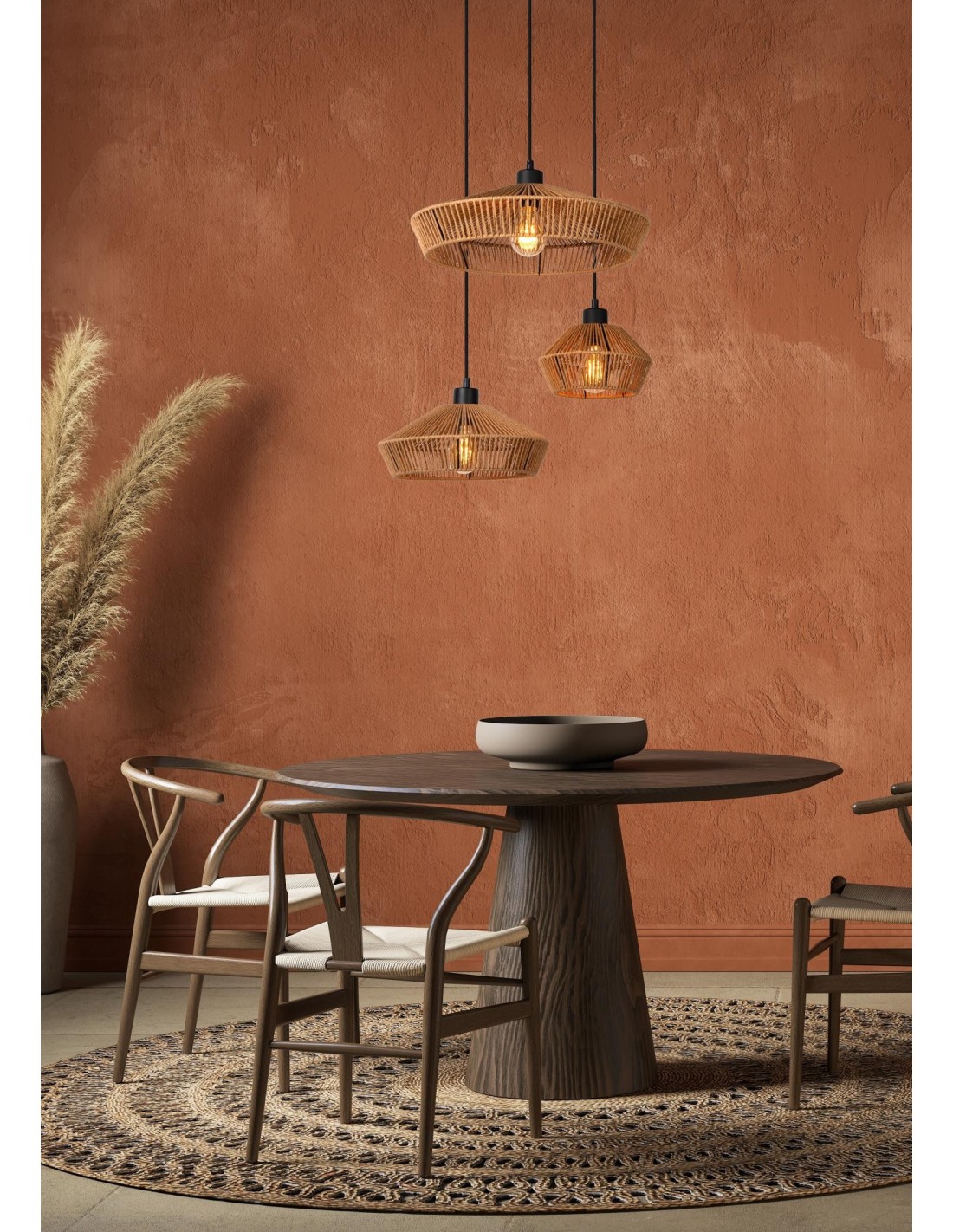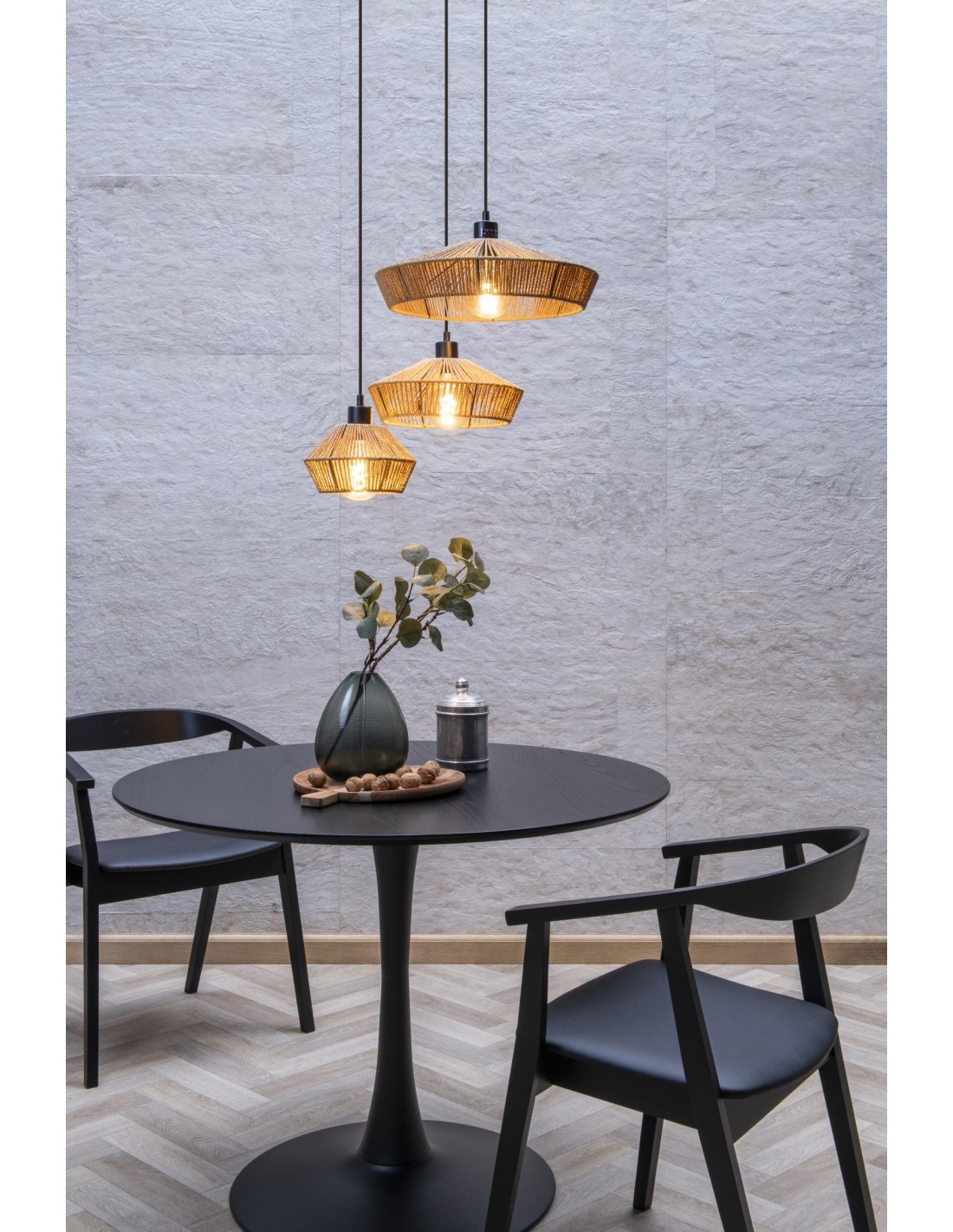 Apportez une touche de nature à votre intérieur avec cette lampe suspendue en papier tressé. Yunkai trouvera sa place au-dessus d'une table à manger ou dans un coin de salon confortable, de préférence entouré de nombreuses plantes. Trois abat-jour ajourés sont suspendus à différentes hauteurs et donnent à Yunkai un aspect ludique. Leurs différents diamètres donnent également une touche de piquant. Yunkai est réglable en hauteur jusqu'à un maximum de 145 centimètres. Sa largeur totale est de 60 centimètres. Associez ce lustre à un variateur d'intensité externe pour créer l'ambiance souhaitée. L'ingrédient idéal pour une soirée agréable.
