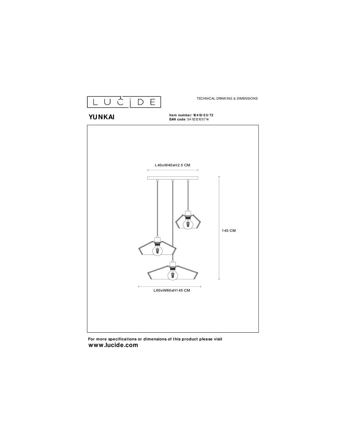 • Consommation énergétique: 3x60W / 230V / A intensité variable (Ampoules non incluses)