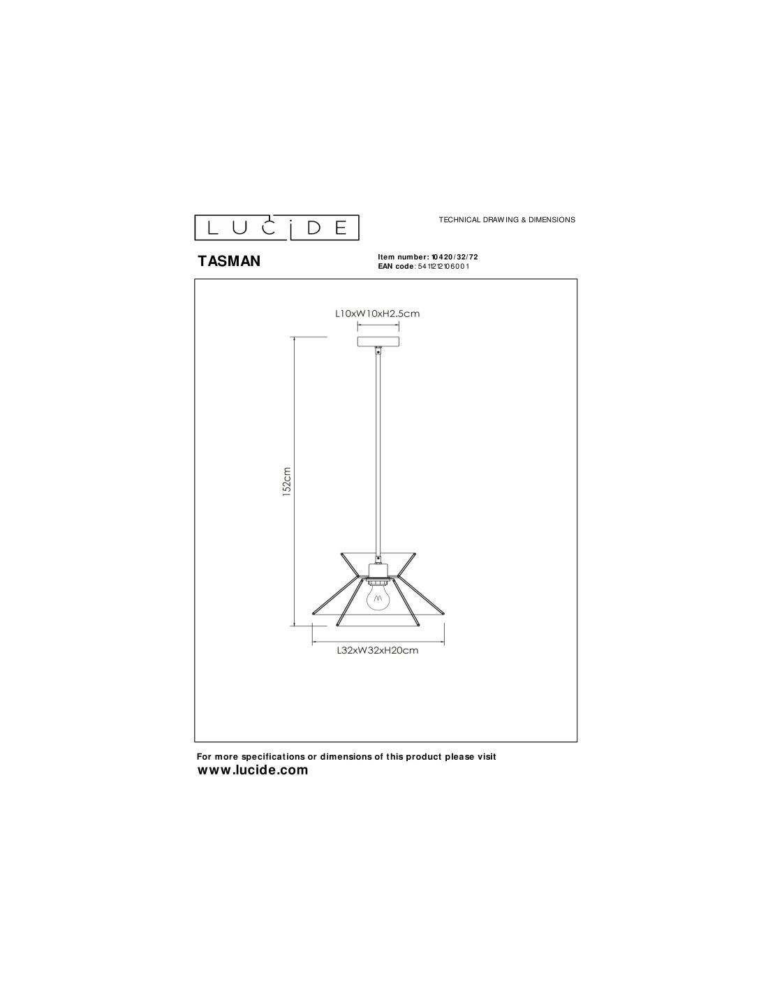 • Consommation énergétique: 1x60W / 230V / A intensité variable (Ampoule non incluse)