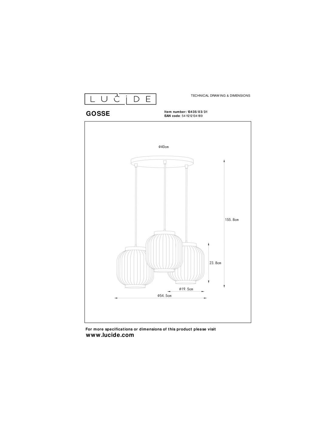 La suspension Gosse fonctionne avec 3 ampoules E27, non fournies ce qui vous permet de choisir la température de couleur et l'intensité lumineuse souhaitées.