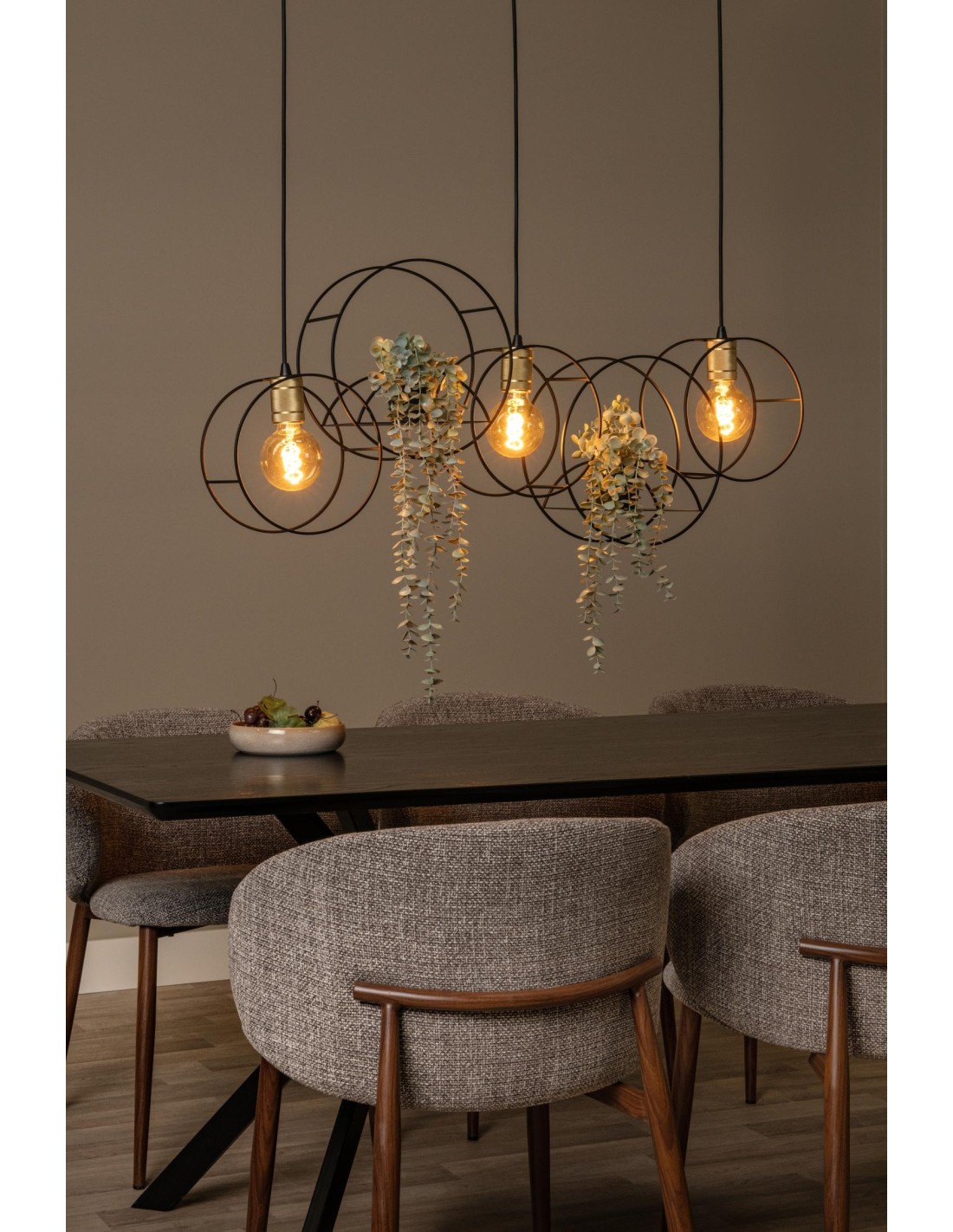 La suspension Circle de Lucide est un luminaire design en métal noir et finitions or mat, pensé pour apporter une touche contemporaine et élégante aux intérieurs.