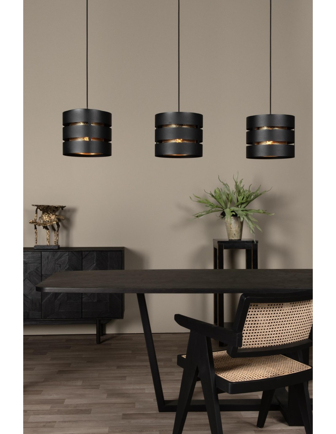 Trois d'affilée ou préférez-vous jouer avec des hauteurs variables ? Avec les suspensions Rosas, vous êtes assuré de créer une atmosphère inégalée, quel que soit votre choix. Au-dessus de votre table à manger ou comme accroche-regard au-dessus du buffet ? Rosas attirera l'attention partout. Cette suspension en acier de haute qualité a une longueur de 110 centimètres et peut également être connectée à un variateur externe. Cela vous permettra de passer facilement à l'atmosphère souhaitée. Les pendules rappellent de petites ruches. Rosas sait allier nature et design à la perfection.