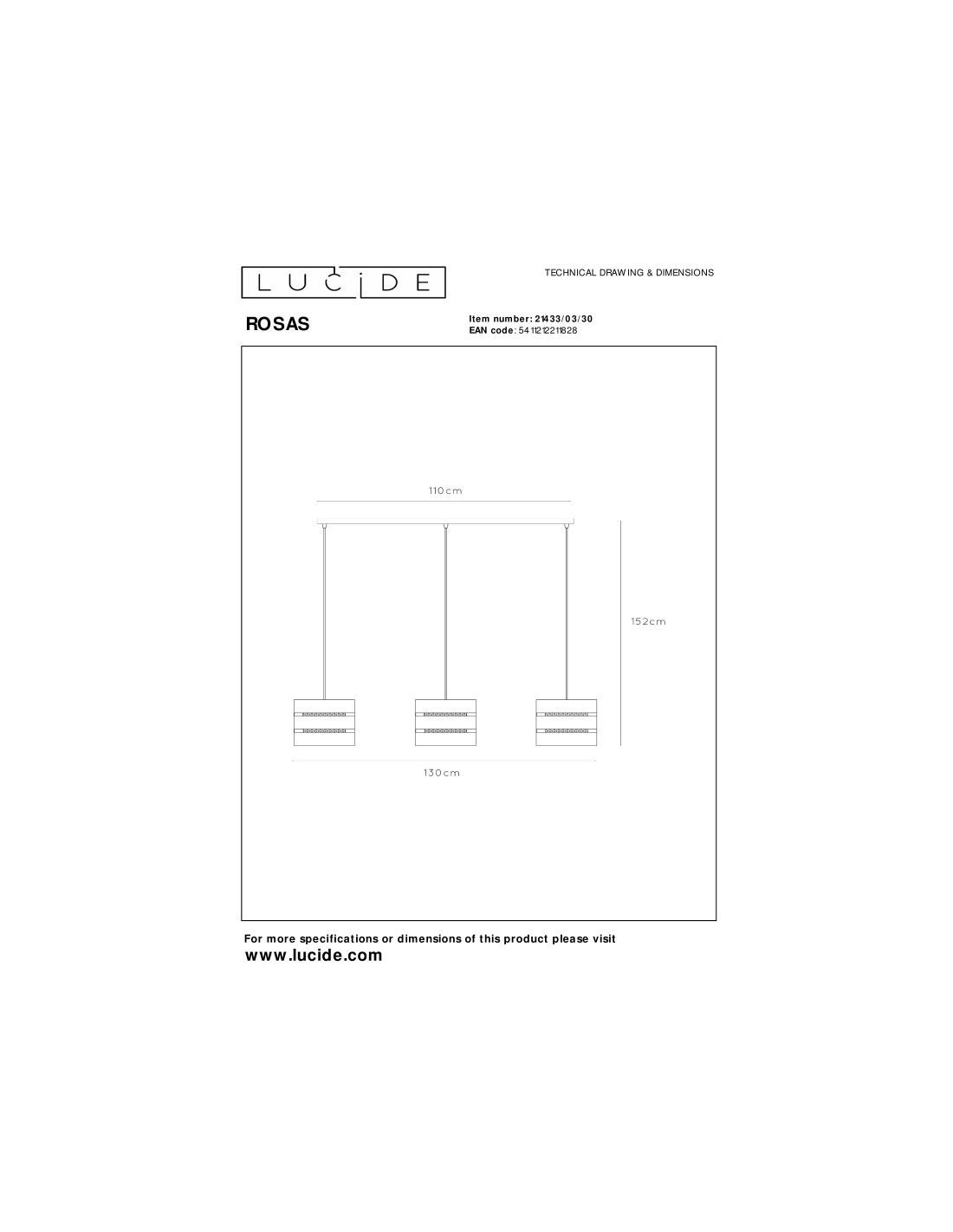 • Consommation énergétique: 3x40W / 230V / A intensité variable (Ampoules non incluses)