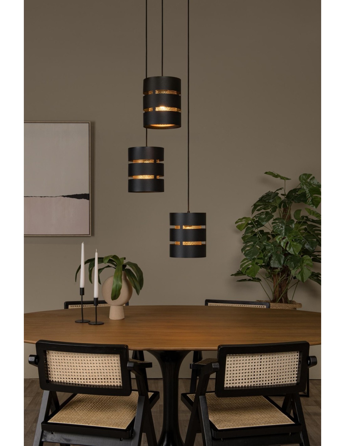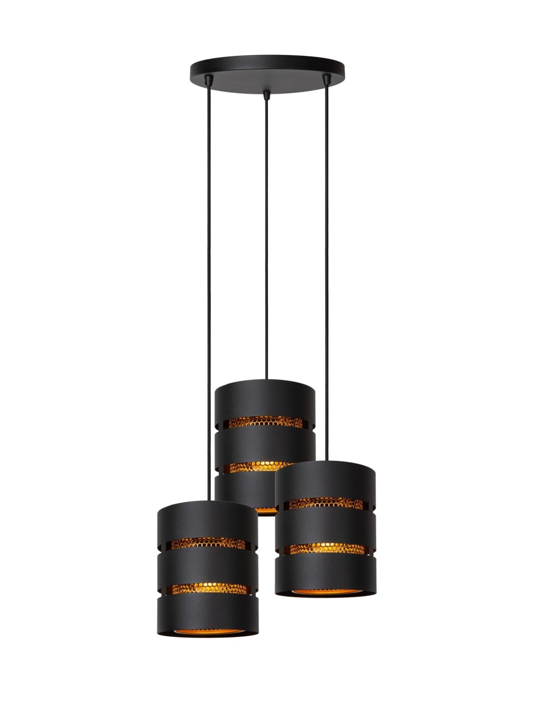 Suspension Led Diam. 43 cm 3xE27 40W Noir et Or mat - Lucide - Rosas