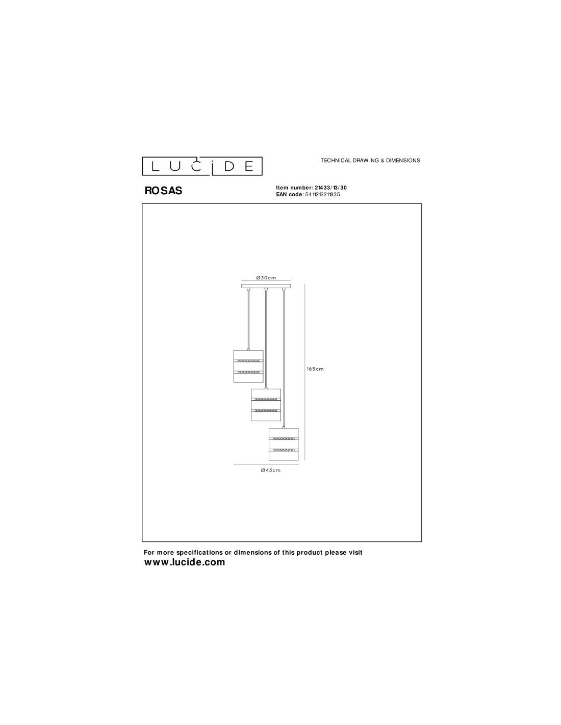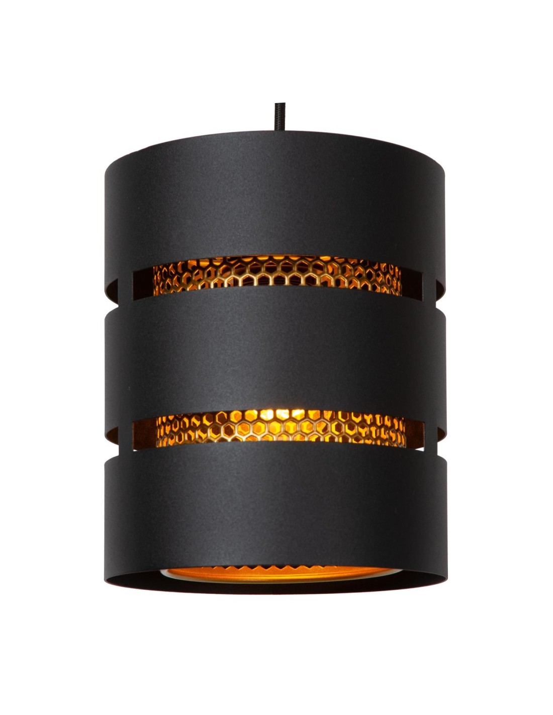 La suspension Rosas de Lucide est un luminaire design en métal associant une finition noire élégante à un intérieur doré qui renforce la chaleur de la lumière.