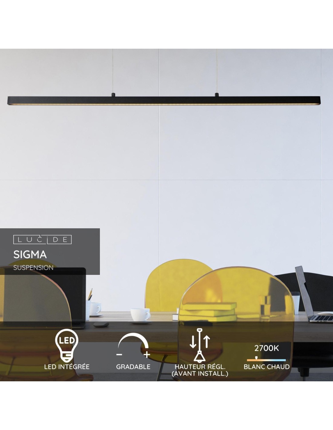La suspension Led Sigma de la marque Lucide séduit par son design moderne et minimaliste, idéal pour sublimer un intérieur contemporain.