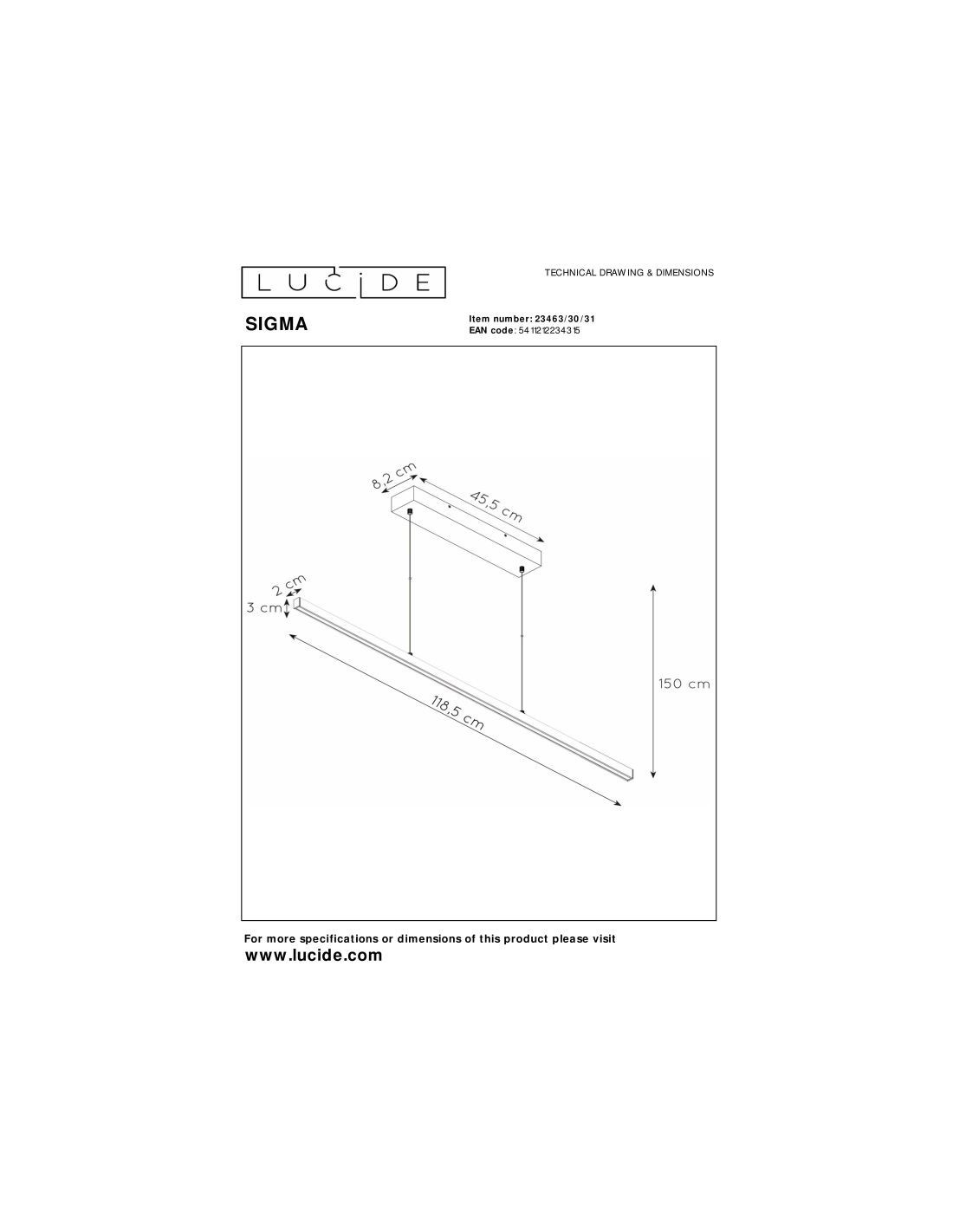 La suspension Sigma de Lucide se distingue par un design minimaliste et épuré, composé d’une fine barre lumineuse en aluminium qui apporte une esthétique contemporaine très élégante.